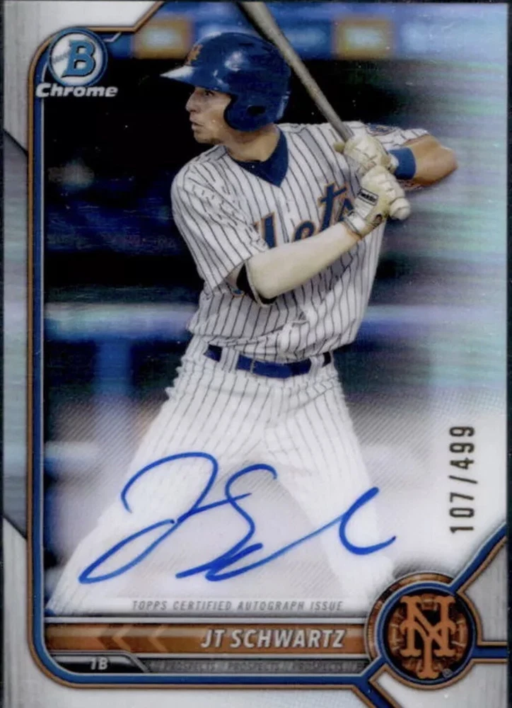 You are bidding on a New York Mets Lot 2021 Bowman Chrome Jose Butto 1st Bowman Refractor Auto /499 New York Mets 2022 Bowman Chrome JT Schwartz Prospect Auto Refractor #107/499 #CPA-JS MEGILL 2022 Donruss Optic #RRS-TM Rated Rookie RC Luisangel Acuna Bowman Chrome RC Luisangel Acuna Optic Season Ticket RC Kodai Senga Bowman Chrome mojo Kodai Senga Topps Chrome mojo Mark Vientos Bowman Chrome RC MOJO Refractor Mark Vientos Topps RC Pete Alonzo Topps 35th Refractor FRANCISCO Alvarez Bowman Chrome Refractor RC Francisco Lindor Bowman Chrome