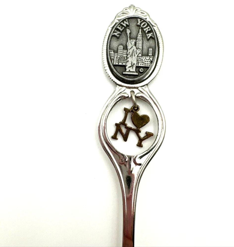 For Sale: New York Collector Spoon — Almost 5 Inches of Big Apple Charm! Looking for a piece of New York you can literally hold in your hand? This charming spoon has it all! An “I ❤ NY” charm dangles from the handle (because, of course, you do), and the top of the handle proudly displays an oval medallion featuring “New York” with Lady Liberty herself striking a pose below it. But wait, there’s more—check out the bowl of the spoon! It’s engraved with New York’s most iconic landmarks, the state’s silhouette, and “New York” on a banner. Fancy, right? The spoon is in pretty good shape with no scratches or dents, but don’t take my word for it—check out the pics and video for yourself! Almost 5 inches long (so close!), this spoon is the perfect way to bring a little NYC into your life. Fun ways to use this spoon : Stir your morning coffee like a true New Yorker—no time for chit-chat, just business. Use it to eat your favorite dessert while pretending you’re at a swanky Manhattan restaurant. Show it off to friends and say, "Oh, this? Just my NY collector spoon. No big deal." Display ideas : Add it to your spoon rack—it’ll give you serious “collector cred.” Hang it in your kitchen and let it spark conversation: "You’ve never been to New York? Let me tell you ALL about it." Snag this spoon today and bring a little piece of the Big Apple home! Be sure to click on "seller's other items" to explore more of our other great finds! Reach Out - I'm happy to consider fair offers.