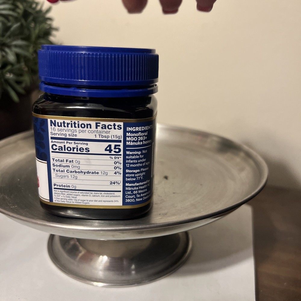 Food Specifications:Preservatives Freegtin13:895015001575Brand:Manuka HealthProduct:HoneyMPN:Not ApplicableUPC:895015001575Form:JarAllergens:NoneCountry of Origin:New ZealandServing Size:40 GramsExpiration Date:1/28Type:LiquidNumber of Servings:16Food Aisle:PantryCalories per Serving:Less Than 50