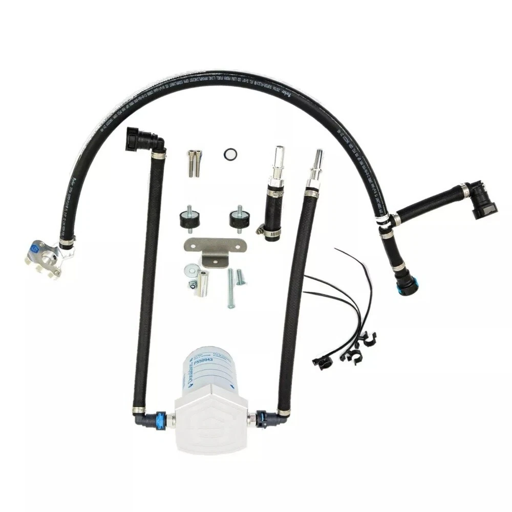 New Gen2.1 CP4.2 Disaster Bypass Kit for 2011-2023 Ford 6.7L Powerstroke Diesel Description: The Gen2.1 6.7L Power Stroke CP4 Bypass Kit features all quick connect lines that will eliminate the need for cutting the factory supply line, which is a debris introduction point, especially if the cut is not thoroughly deburred. It also eliminates the need to use a compression fitting, which is a potential leak point. The OE-style quick connect lines also eliminate any threaded joints that are further leak points and have the potential of generating debris during install. Features: All OE-style quick connects New and improved Disaster Prevention Kit Fuel supply split-off 25 inches away from the CP4 pump Return filter isolates CP4 debris before it goes on to the tank Safeguards fuel injectors, rails, lines, and tank from CP4 debris Fitment: For 2011+ Ford F-250 F-350 F-450 F-550 6.7L Powerstroke Diesel Note: Some Modifications may be required All accessories as shown are included. Professional installation is highly recommended. Instructions are not included. Please check the pictures carefully before buying to determine whether these products are what you need. Communication is the best way to solve the problem. If you have any problems after purchasing, please contact us in time before opening return or case.