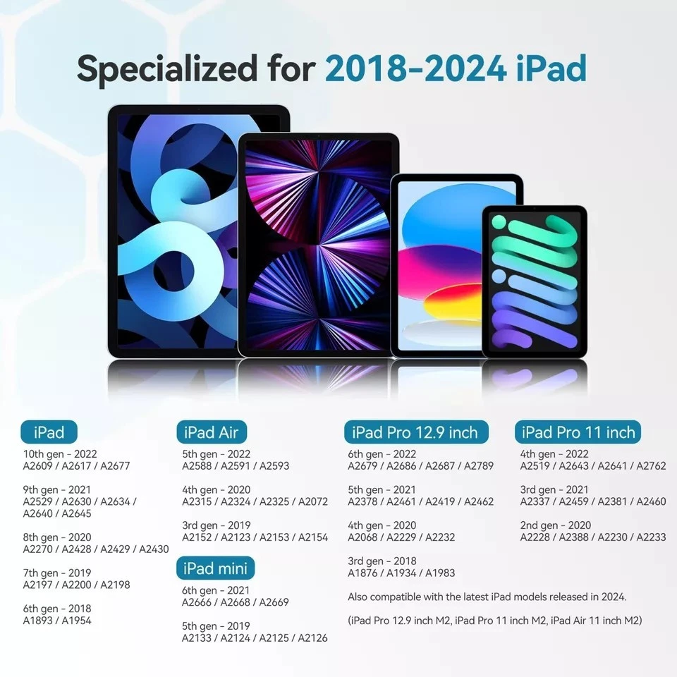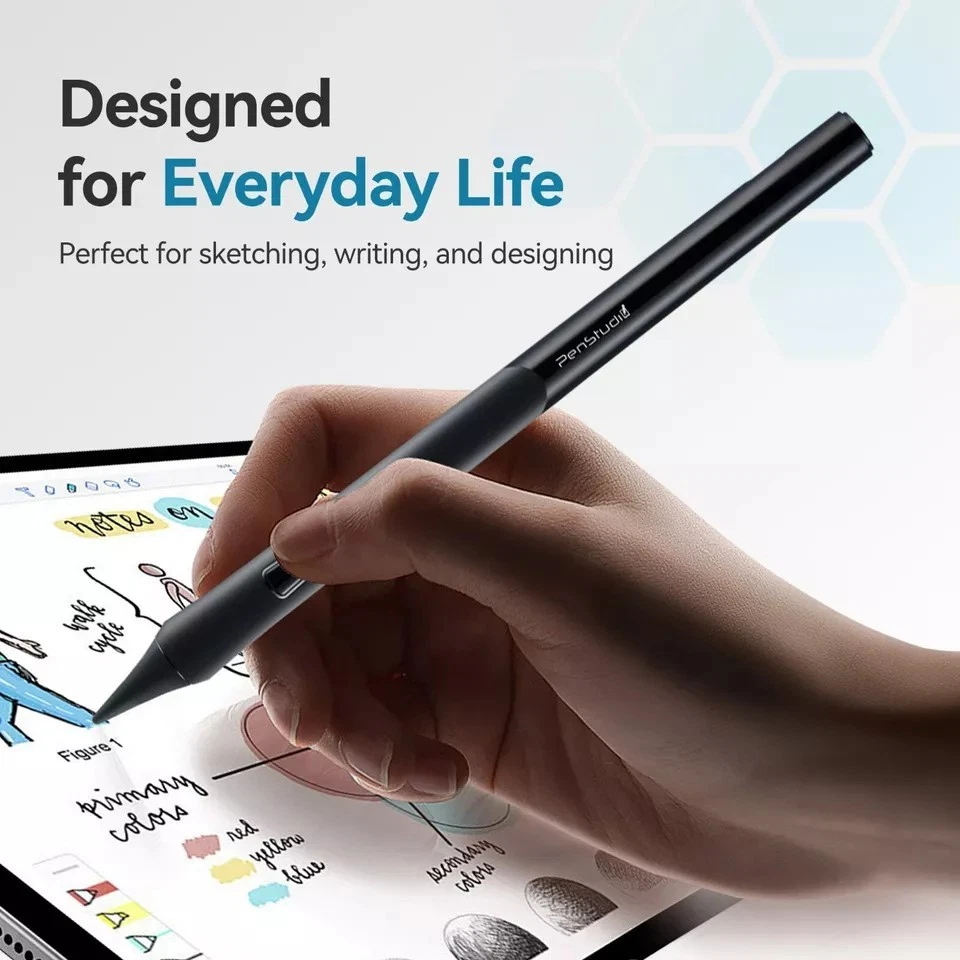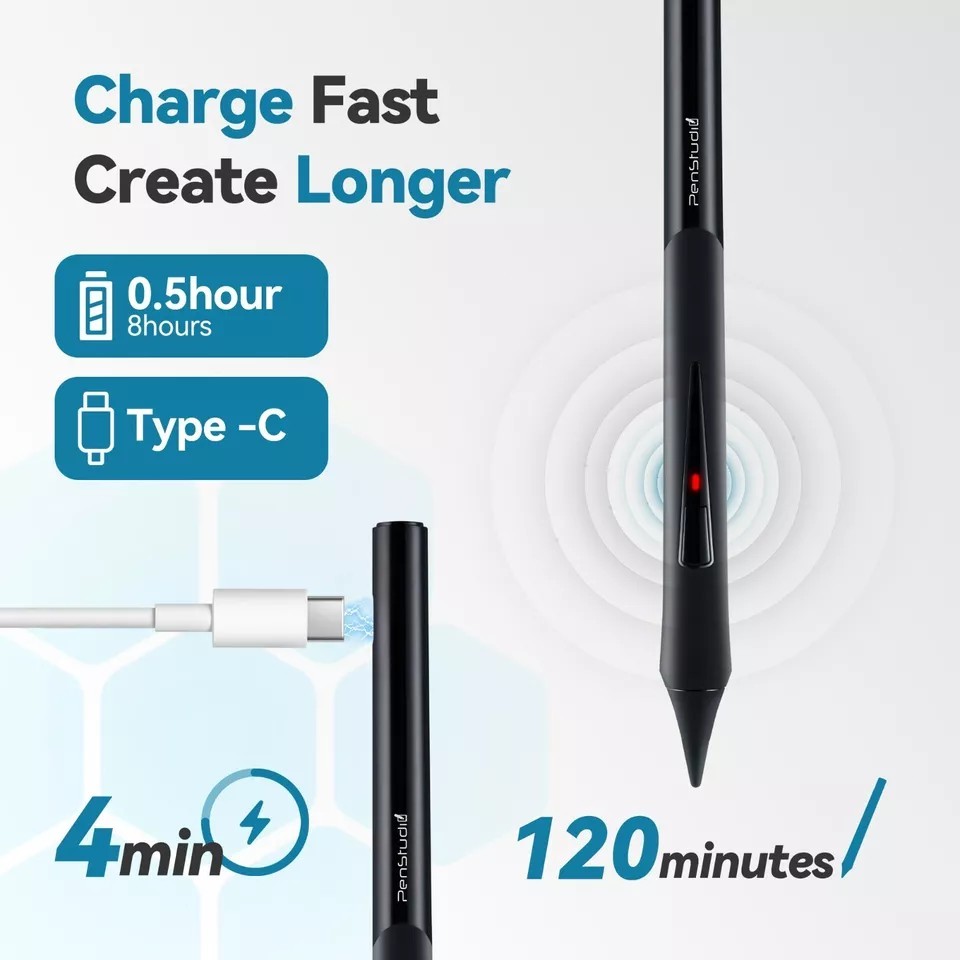 【PATENTED ERGONOMIC DESIGN】 The Penstudio PS-X iPad Pencil features a comfortable design with a 0.65°tapered shape that ensures a natural and fatigue-free drawing experience. Its soft rubber grip provides precise control and enhanced drawing accuracy, making it the perfect tool and gift. 【CUTTING-EDGE SIGNAL ADJUSTER FOR ALL TIPS】 Supported by advanced algorithms of the P2 chip, PS-X Stylus Pen for iPad delivers an exceptional 0.1mm pixel precision without any perceptible delay, guaranteeing accuracy and responsiveness across a wide range of tip options. You can swap between soft, basic and metal tips to customize your iPad drawing/writing experience while maintaining the precision and performance of the Penstudio PS-X iPad Pen. ❗❗ NOTE: Recommend tips that work with pencil 1st/2nd gen. They are compatible with Penstudio PS-X too. 【CUSTOMIZABLE SIDE BUTTON】 Penstudio PS-X iPad Stylus‘s programmable button can be customized using the intuitive Penstudio App. You can assign personalized functions to the side button with single/double/triple presses, such as changing tool from highlighter to lasso, activating an eraser, or starting recording when in your lecture or accessing frequently used tools. PS-X iPad Stylus streamlines your creative process and boosts productivity! ❗❗ NOTE: Only available in General, and 4 Apps: Goodnotes, Notability, Paint and Procreate. 【PALM REJECTION & FIND PENCIL FOR SEAMLESS USE】 With palm rejection technology, you can write and draw without worrying about accidental screen touches, enhancing your overall user experience. ❗❗ NOTE: Wireless Charging is NOT Supported. NO Magnet Attach for iPad Pro M4, iPad Air M2, iPad Air 3rd Gen, iPad 6th/7th/8th/9th/10th Gen, iPad mini 5th. 【2X FASTER CHARGE & INSTANT BATTERY INDICATOR】 Penstudio's leading fast charge tech, and longer battery life is not a blast. With just 30 minutes of charging, you get 8 hours of battery life. Charge 4 mins = work 100 mins. This triumphs over most ipad pen brands. With an instant battery % widget on your iPad, you can focus on your work or studies without worrying about running low on battery. 【COMPATIBILITY CHECK FOR 2018-2025 IPAD】 Please confirm your iPad's compatibility before purchase! Penstudio iPad Pencil PS-X specialized for NEW! 2024 iPad Air 11-inch & 13-inch (M4), iPad Pro 11-inch (M4), iPad Pro 13-inch (M4), Apple iPad (11th, 10th. 9th, 8th, 7th, 6th generation); iPad Air (7th, 6th, 5th, 3rd, 4th Gen); iPad Pro 12.9" (6th, 5th, 4th, 3rd Gen); iPad Pro 11" (5th, 4th, 3rd, 2nd & 1st Gen); iPad mini (6th and 5th Gen). Method: Settings > Tap General > Tap About > Model name [iPad XX (X generation)].