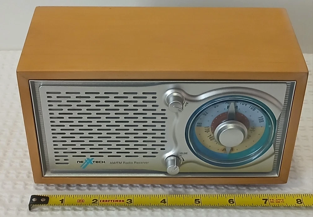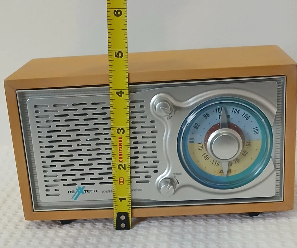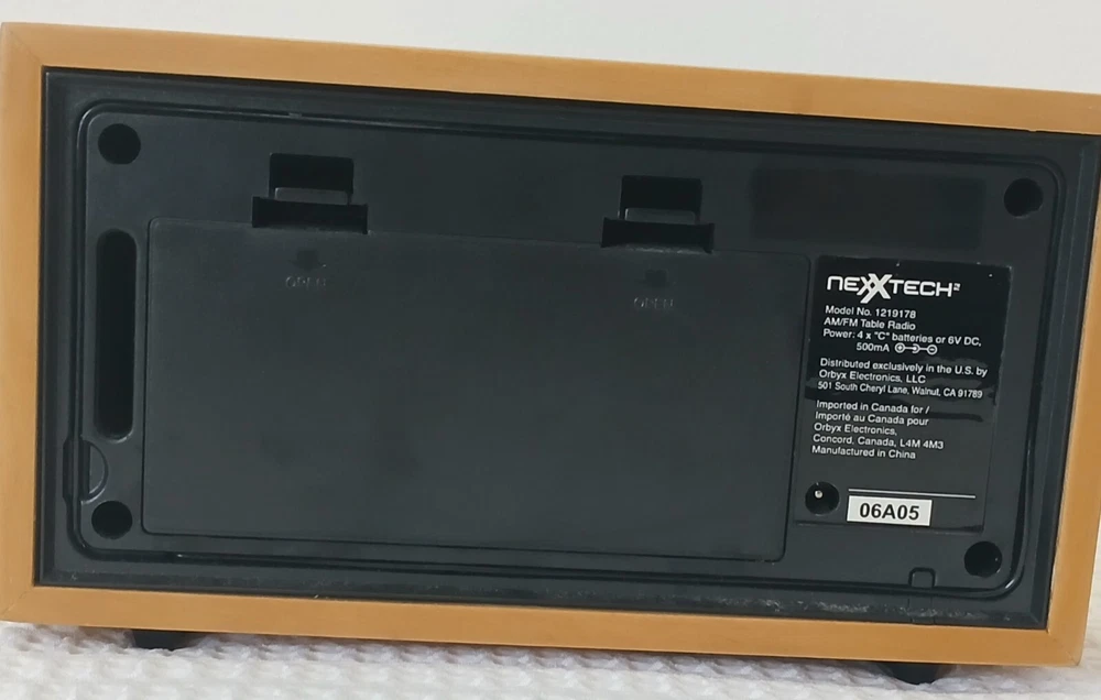 This item is pre-owned, in working condition, with no damages. Nexxtech Am/fm Table Radio Model 1219178 Maplewood Cabinet. Powers with 4x "C" batteries (not included) or there is a spot to plug in a power cord (not included) you receive the same item shown, tested, and works, pictures show all angles, front, back, and information details listed on the back of item as well as battery compartment. The tape measure is shown for size reference. Carefully packed and shipped to you by the next business day.