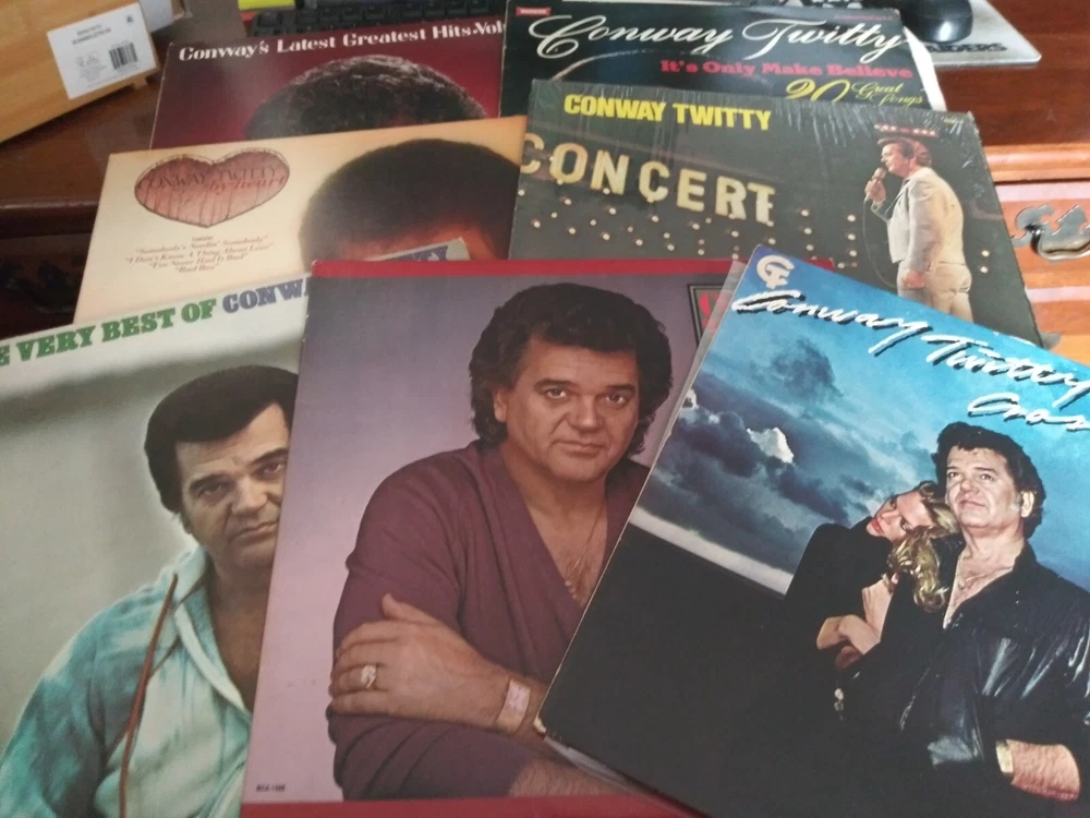 I put this Lot together from multiple collections Have Recently purchased - They were all Professionally cleaned & Tested, all records are guaranteed to play well and be as described or your money back!!!!!!! Here are the 7 different Titles by Conway Twitty (HELLO DARLIN') Record 1 - Cross Winds (RE) NM Disc / VG+ Cover 1979 (MCA) MCA-3086 Tracklist Don't Take It Away 3:40 Heavy Tears 2:31 Love Comin' Down 3:17 I Wish You Could Have Turned My Head 3:55 Happy Birthday Darlin' 2:50 I May Never Get To Heaven 2:47 Grand Ole Blues 4:10 Draggin' Chains 2:43 If You Can't Write The Music 2:44 Did We Have To Come This Far (To Say Goodbye) 2:43 Record 2 - Number Ones NM Disc / VG++ Cover 1982 (MCA) MCA-5318 Tracklist I'd Just Love To Lay You Down 3:19 Touch The Hand 3:20 Boogie Grass Band 2:19 A Bridge That Just Won't Burn 2:54 I May Never Get To Heaven 2:47 Rest Your Love On Me 4:29 Happy Birthday Darlin' 2:50 I See The Want To In Your Eyes 2:47 Don't Take It Away 3:40 I've Never Seen The Likes Of You 2:50 Record 3 - The Very Best Of (RE) VG Disc / VG+ Cover 1980 (MCA) MCA-1485 Tracklist Hello Darlin' 2:25 Linda On My Mind 2:39 The Image Of Me 2:53 Georgia Keeps Pulling On My Ring 3:18 Danny Boy 2:57 Don't Cry Joni 4:21 I Can't Stop Loving You 2:45 It's Only Make Believe 2:18 Lonely Blue Boy 2:13 There's A Honky Tonk Angel (Who'll Take Me Back In) 2:56 (I Can't Believe) She Gives It All To Me 2:25 Play, Guitar, Play 3:20 This Time I've Hurt Her More Than She Loves Me 2:27 I've Already Loved You In My Mind 2:45 You've Never Been This Far Before 2:56 Record 4 - Conway Twitty NM Disc / VG++ Cover in Shrink 1977 (MCA) LP-1002 Tracklist That Kind Of Girl Walk Me To The Door Go Woman Go Don't Put Your Hurt In My Heart I Don't Want To Be With Me If You Were Mine To Lose I'm Checkin' Out Star Spangled Heaven Table In The Corner I'm So Used To Loving You This Road That I Walk Dim Lonely Places Record 5 - By Heart NM Disc / VG+ Cover 1984 (Warner Bros) 25078-1 Tracklist I Don't Know A Thing About Love I've Never Had It Bad Without You All My Life Bad Boy Somebody's Needin' Somebody By Heart When The Magic Works Call It What You Want To (It's Still Love) A Hard Act To Follow Record 6 - It's Only Make Believe - 20 Great Songs (UK Import) NM Disc / VG+ Cover 1981 (Warwick) WW 5102 Tracklist It's Only Make Believe Mona Lisa I Can't Stop Loving You Don't Take It Away To See An Angel Cry I See The Want In Your Eyes Baby's Gone Georgia Keeps Pulling On My Ring You've Never Been This Far Before Lonely Blue Boy Danny Boy There's A Honky Tonk Angel (Who'll Take Me Back In) After All The Good Has Gone Hello Darlin' Maybellene How Much More Can She Stand Fifteen Years Ago I Love You More Today Happy Birthday Darling (Lost Her Love) On Our Last Date Record 7 - Conway's Latest Greatest Hits • Volume 1 NM Disc / VG Cover 1984 (Warner Bros) 25170-1 Ain't She Somethin' Else 3:20 The Rose 3:32 Slow Hand 2:53 Somebody's Needin' Somebody 3:54 Three Times A Lady 3:40 I Don't Know A Thing About Love (The Moon Song) 2:56 The Clown 3:59 Heartache Tonight 3:58 Lost In The Feeling 3:08 We Did But Now You Don't 3:5 Shipped with USPS Media Mail.
