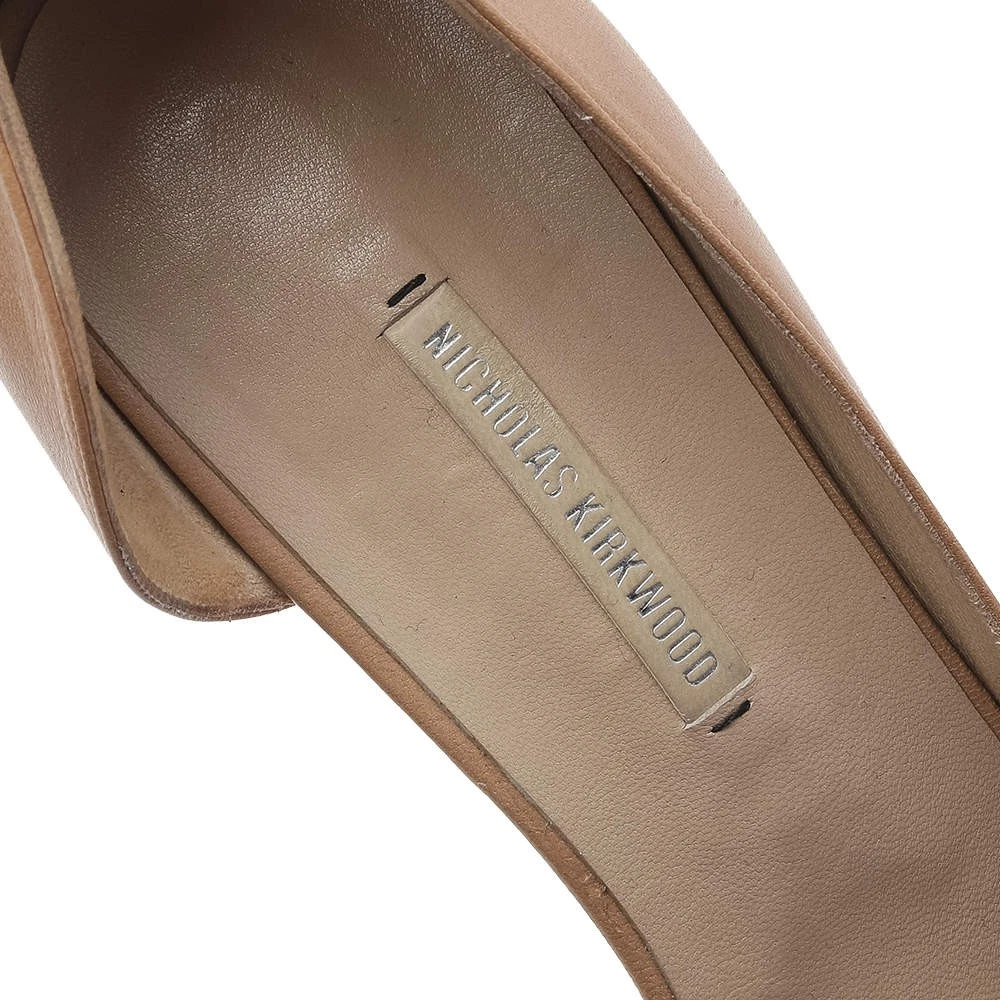Our eBay Store About Us Contact Us Add to Favorite Sellers Nicholas Kirkwood Beige Leather Peep Toe Platform Pumps Size 395 There are some shoes that stand the test of time and fashion cycles, these timeless Nicholas Kirkwood pumps are the one. Crafted from leather in a beige shade, they are designed with sleek cuts, peep-toes, and tall heels. Product Details Brand Nicholas Kirkwood Color Beige Includes The Luxury Closet Packaging Size 39.5 Outsole Length 22 cm Outsole Width 7 cm Certified by The Luxury Closet This item has gone through a detailed authentication process overseen by our experts. We offer a lifetime guarantee of authenticity on all our items. How We Check The in-house team of experts at The Luxury Closet is highly trained to verify the authenticity and the condition of the luxury products. They ensure that only 100% authentic items are put on sale.The evaluation process is unique with its own mix of assessment criteria and differs according to the category. Each item is evaluated based on the following combination of hallmarks, hardware, stitching, symmetry, material, craftsmanship, stamping, codes, hologram stickers, and packaging. Our authenticators also check if the items have been modified or amended (e.g., aftermarket diamonds, replaced batteries, repaired bags, etc.) International Buyers Import duties, taxes and charges are not included in the item price. These charges are the buyers responsibility. Please check with your country’s customs office to determine what these additional cost will be prior to buying.