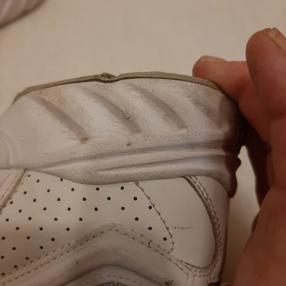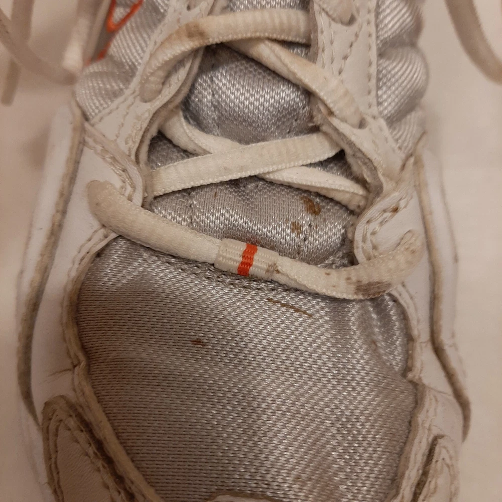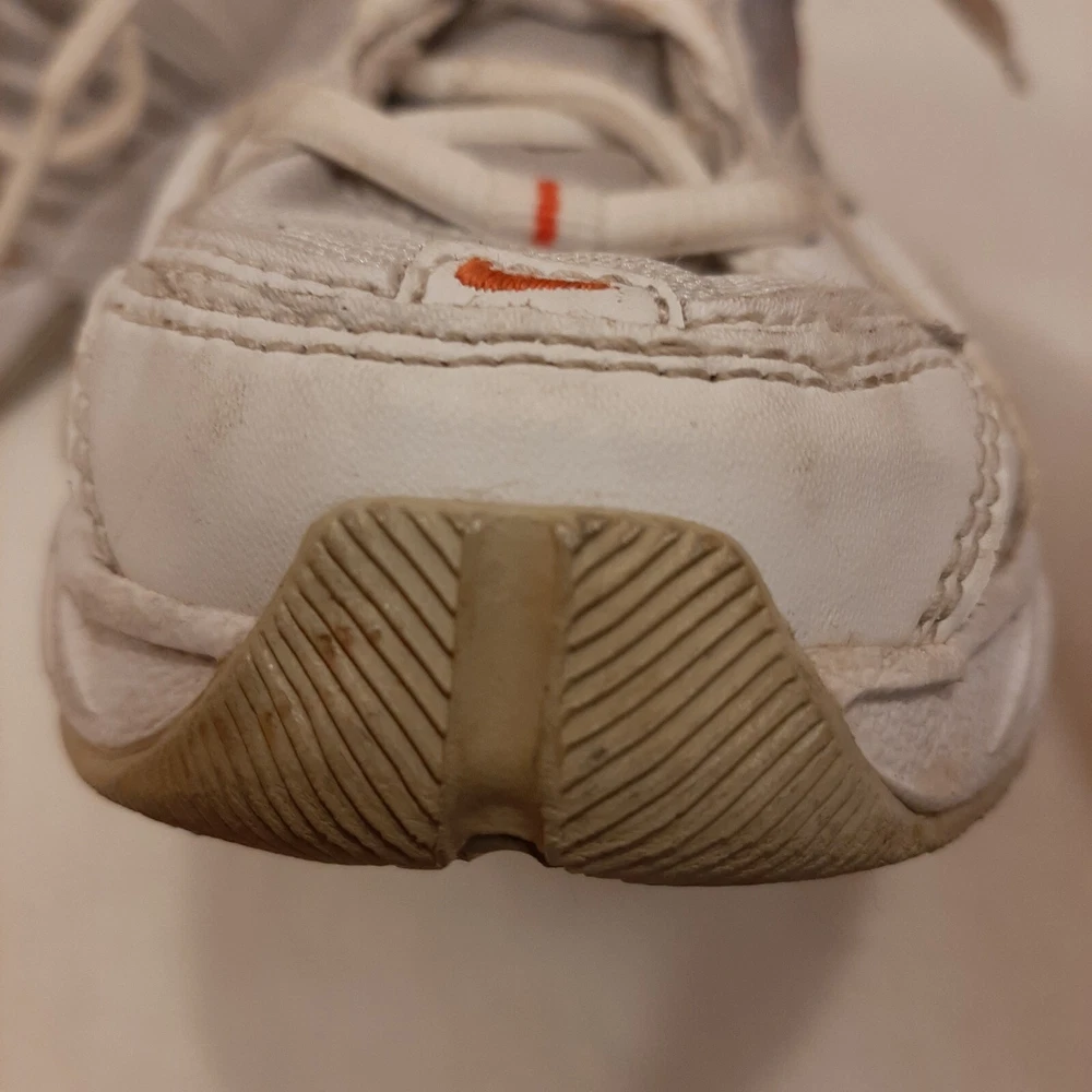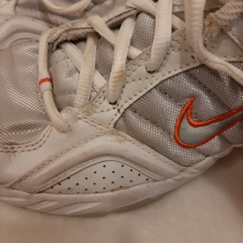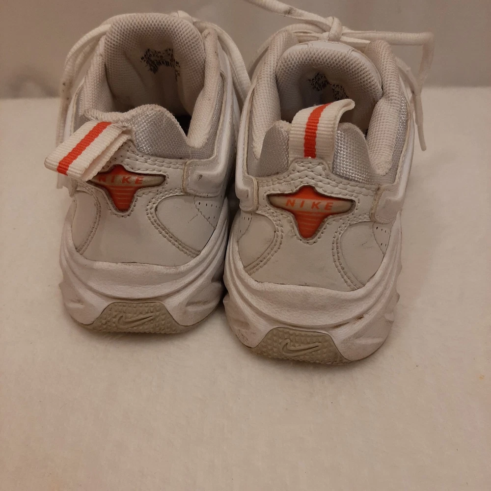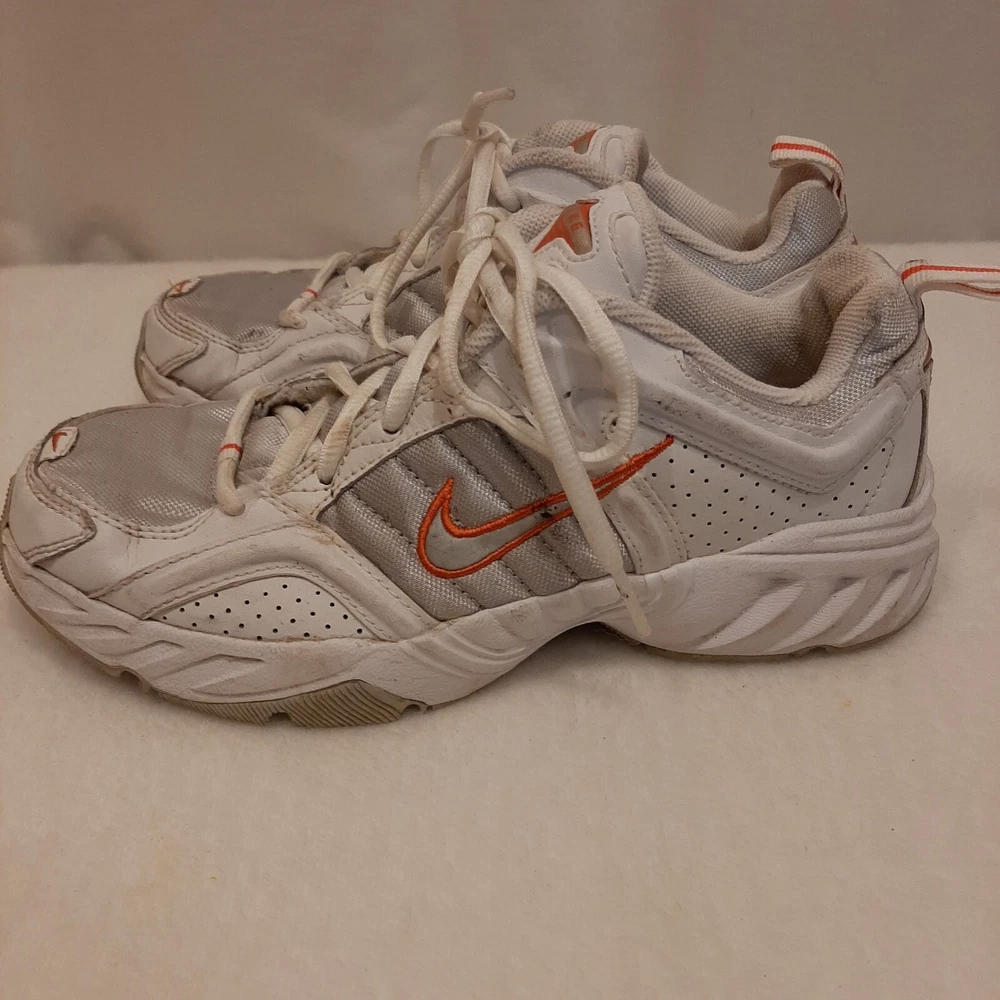 Nike 310184 Women's Shoes Training Running Size 6.5 Peach White Non Marking READ In good pre-owned condition may show signs of wear from use/handling/storage/display. Please view all pics for condition/details/flaws/issues. SOLD AS IS In fair/poor pre-owned condition may show signs of wear from wearing/use/handling/storage/washing please view all photos for details. These shoes have some flaws there are many dirty marks on them please see photos 9-19, There is some separating going on one shoes please see photos 13 & 14, The bottoms look in really great shape not much wear please see photo 6.