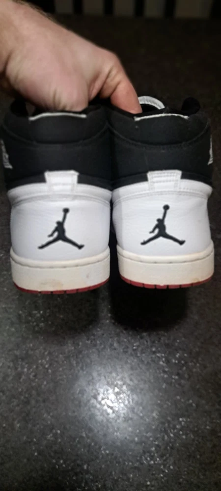 Jordan 1 high strap white black. Back part of strap was cut off. 999999999 sample pair. Very clean for their age only flaw is cut strap. 100% wearable coming from my personal collection.