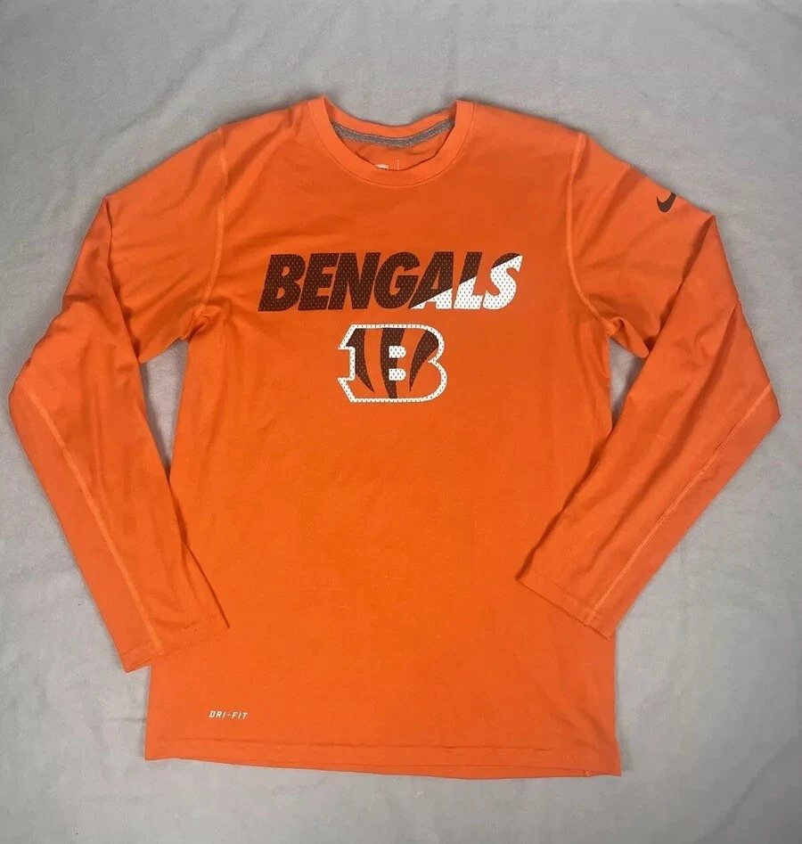 Nike Cincinnati Bengals Shirt Mens Small Orange NFL Long Sleeve Dri Fit Football