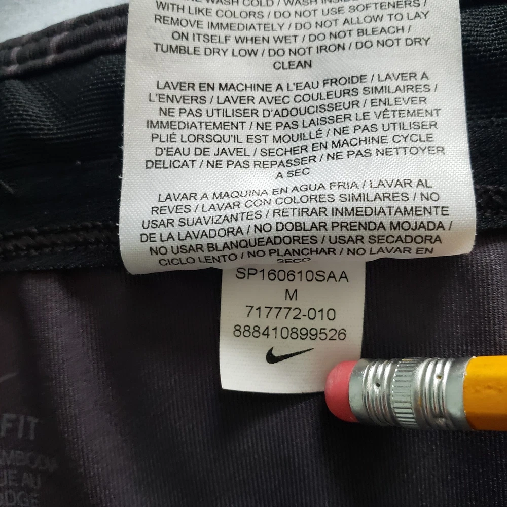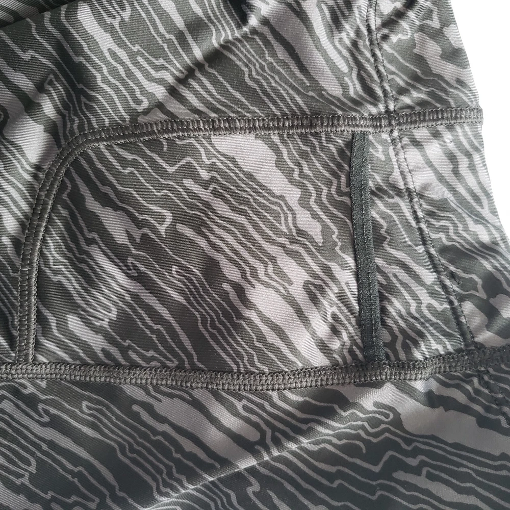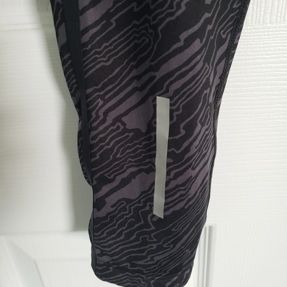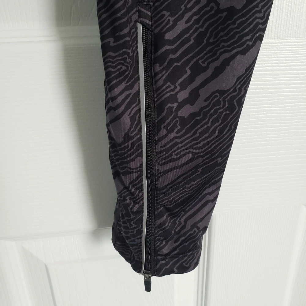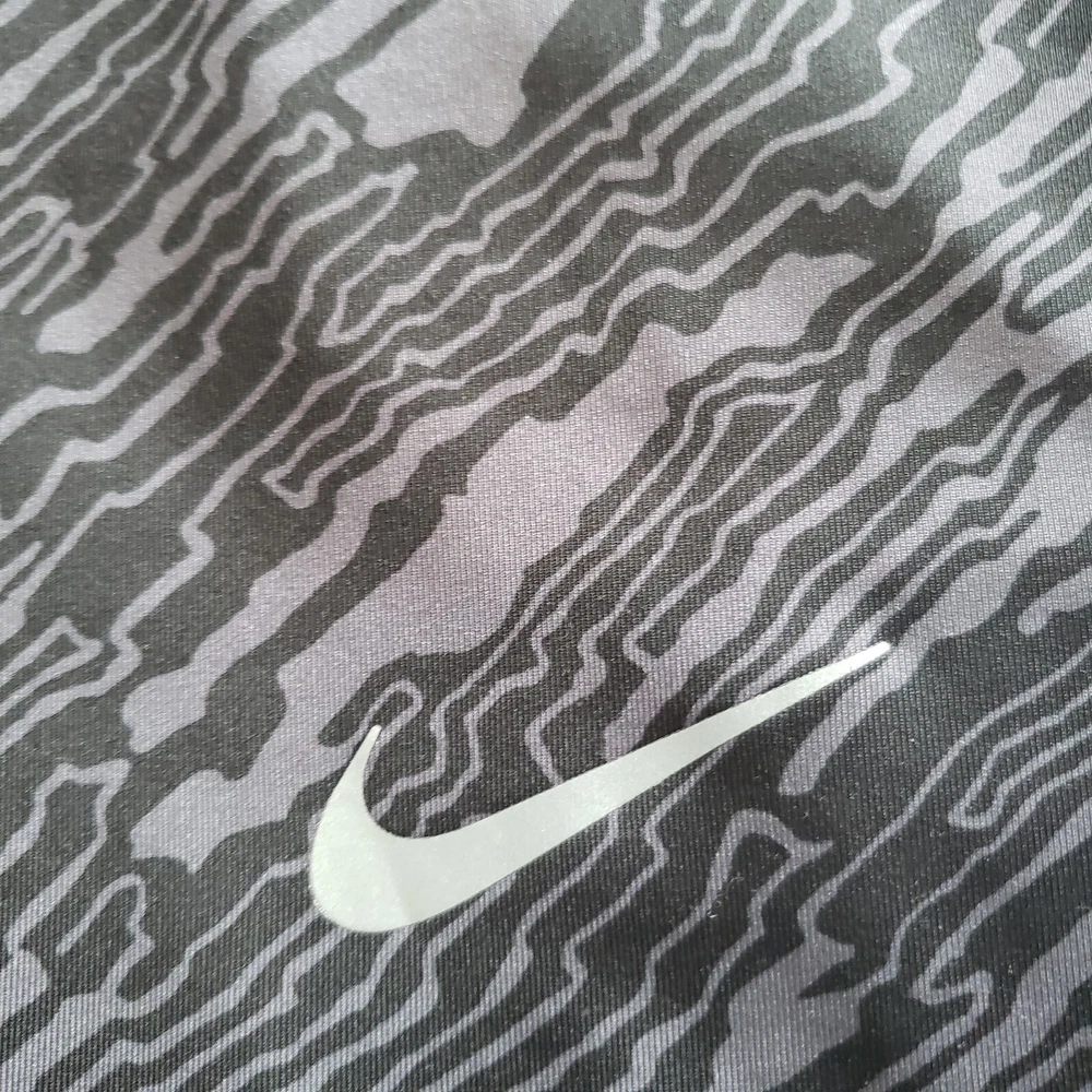 Nike Dri Fit Compression Camo Running Leggings Size M. Zip Ankle, Drawstring Waist. Two back pockets, one with zip close. Reflective tape when running in low light. Black/Gray Camo Pattern. Excellent condition. Returns accepted - buyer pays return shipping.