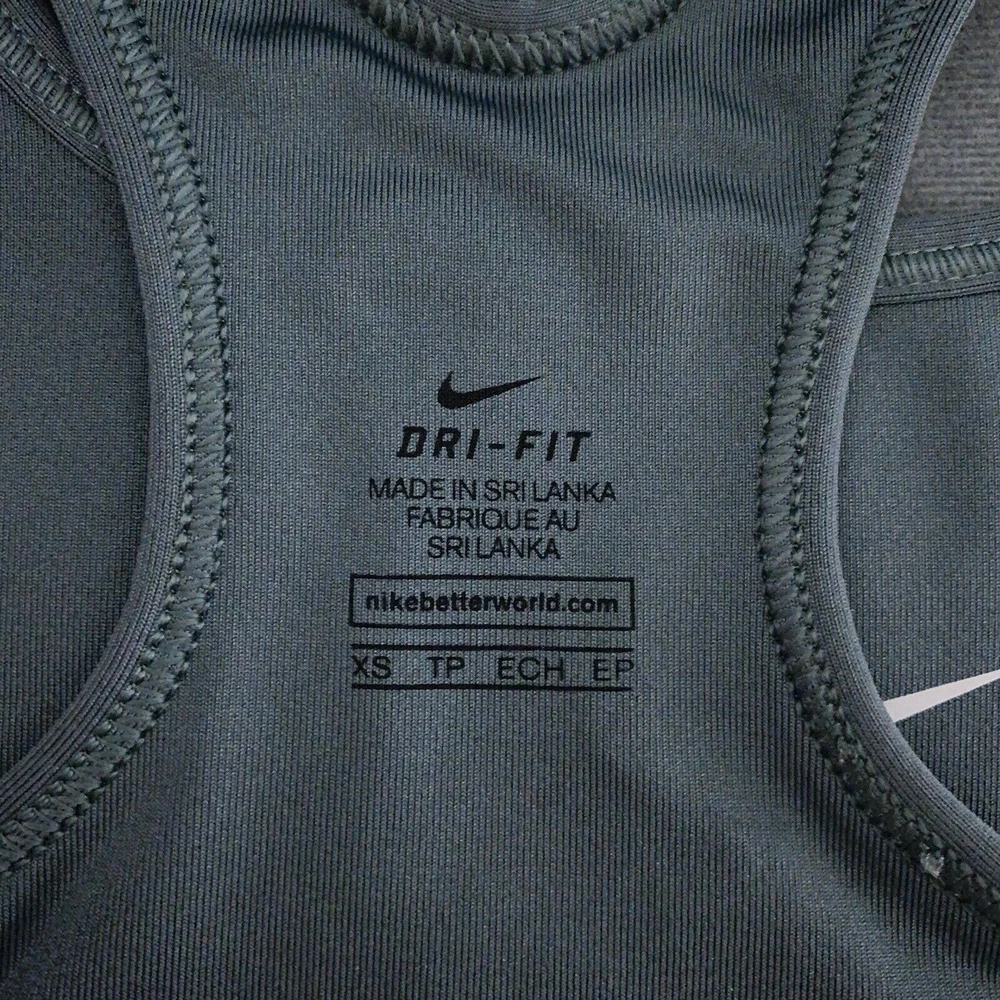 Listed is a Nike Dri-Fit sports bra, pullover, unlined, dark sage green with white Swoosh logo on front. Size XS. Preowned, some slight discoloration at underarms, otherwise good condition, please be sure to see all photos, sold as-is. Thank you for looking!