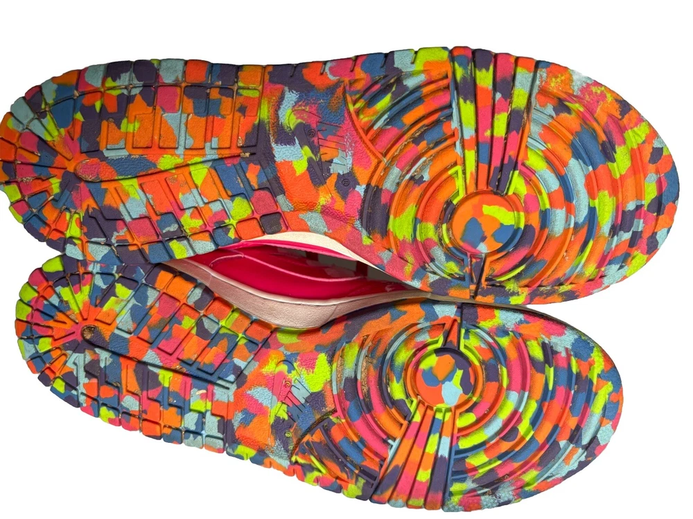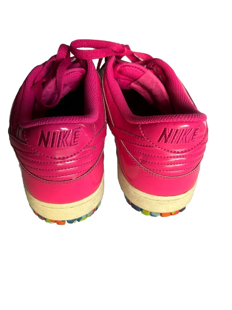 RARE AND HARD TO FIND! Nike Dunk Low in vivid pink and limited edition "Fruity Pebbles" edition! Awesome and fun multi-colored bright soles and hot pink patent leather. Women's 11.5, or men's 10. Great to add to your collection!!