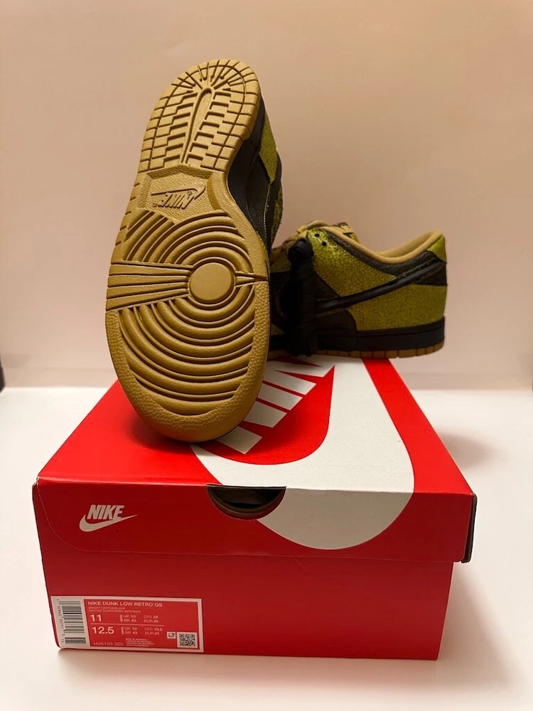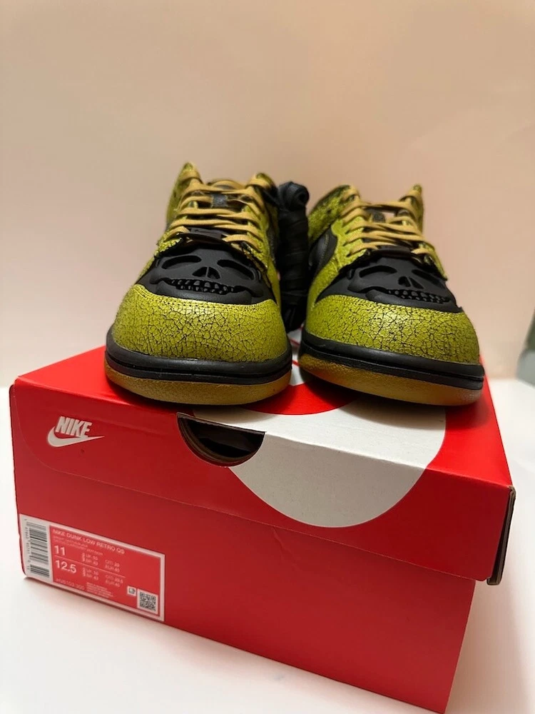 Get ready to add some spooky style to your sneaker collection with these Nike Dunk Retro Low Halloween Skull sneakers. These shoes feature a green colorway with a skull theme, perfect for the spooky season. The low-top shoe shaft style and athletic type make them ideal for casual wear or for hitting the gym. These Nike Dunks are made for men and come in US shoe size 11. The skull theme adds a touch of edginess to the design, making them a statement piece. These sneakers are part of the Nike Dunk product line and are perfect for any sneakerhead looking to add a unique touch to their wardrobe.