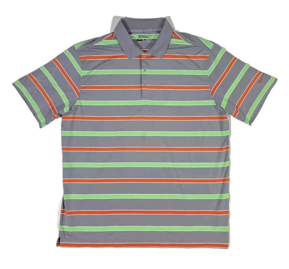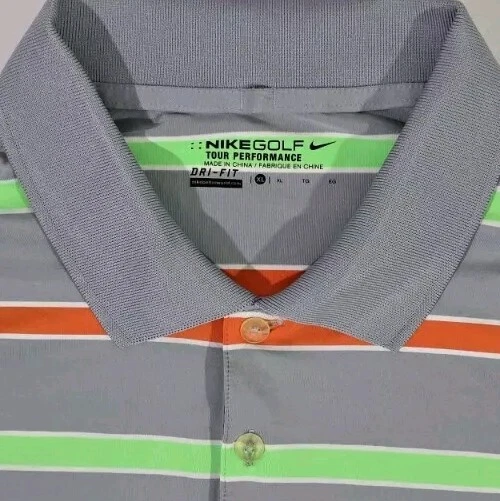 Nike Golf Tour Performance Gray Green Orange Strip Polo Shirt Men's XL Dri-Fit Measures Approx: Total Length - 31 inches Arm Pit to Arm Pit - 24 inches Shirt is Very Clean and in Very Good to Excellent Overall Condition!! Please see pics for details...