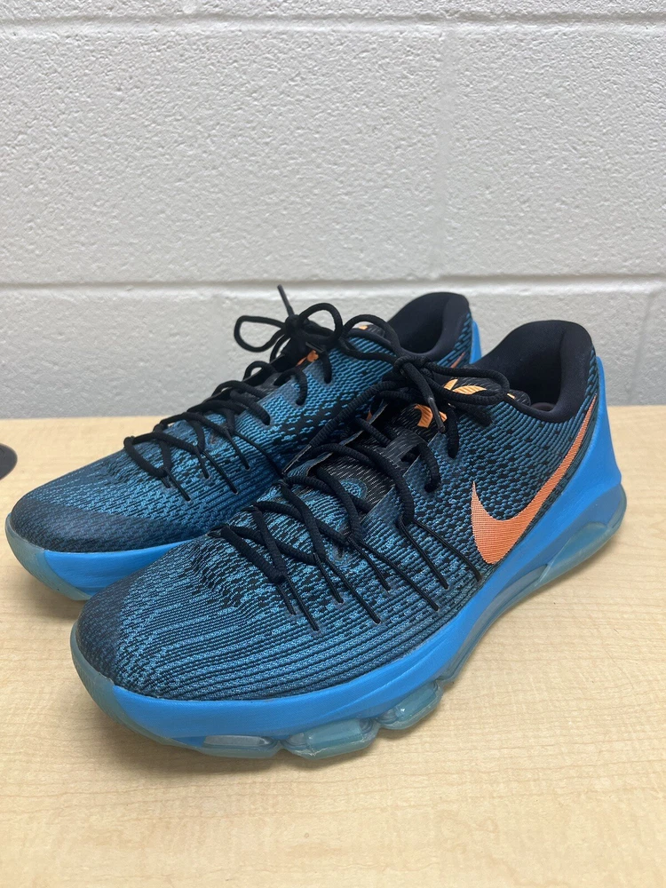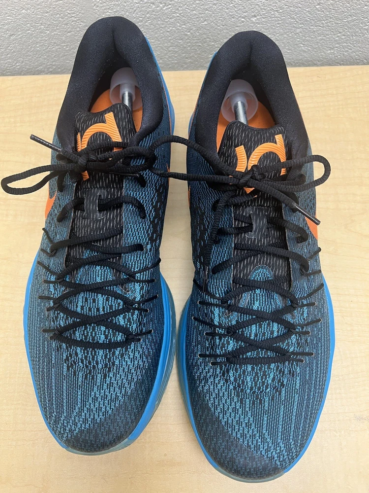 Elevate your basketball game with these Nike Kevin Durant athletic sneakers. The blue and orange colorway pays homage to the Oklahoma City Thunder, making these shoes perfect for fans of the team. The synthetic upper material provides durability and support during intense gameplay. These shoes are part of the Nike Air product line and boast a style code of 749375-480. The shoe size is 13 in the UK, 14 in the US, and 48.5 in the EU. The shoes were manufactured in Vietnam in 2015 and are not considered vintage. The shoe width is medium and the style is customized for athletic performance on the court. Don't miss out on the chance to add these stylish and functional Nike basketball shoes to your collection.