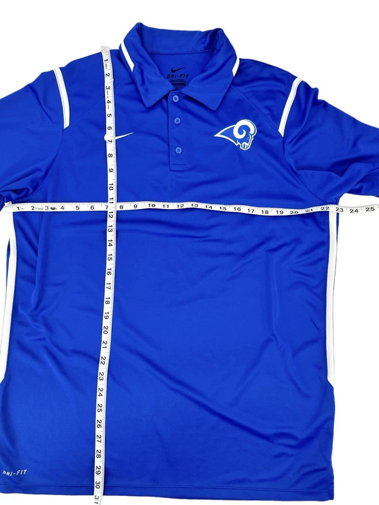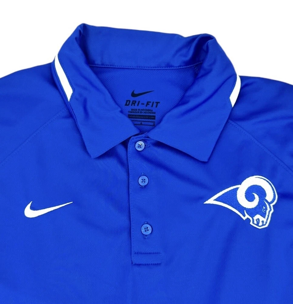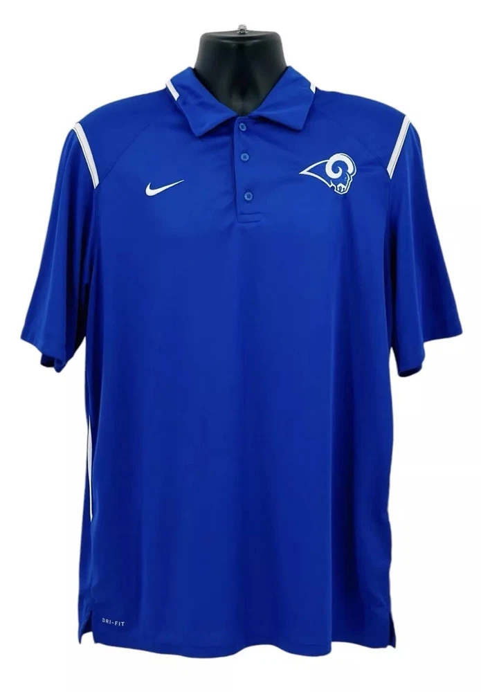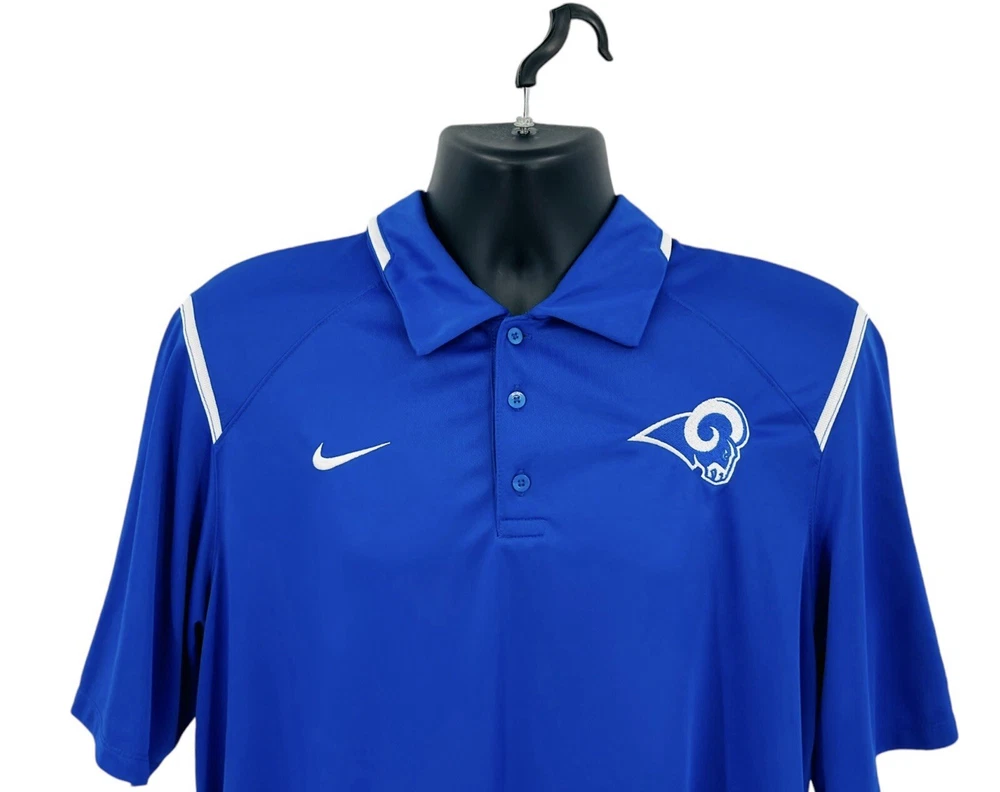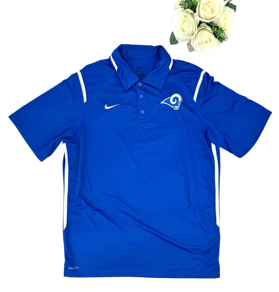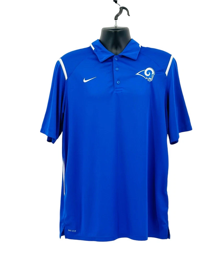 Nike Dri-Fit Game Day Polo Shirt Men's Size Large Royal Blue LA Rams Short Sleeve. In Excellent Condition. From Clean Smoke Free Environment. Shipped To You With USPS. Thanks For Visiting Our Store!