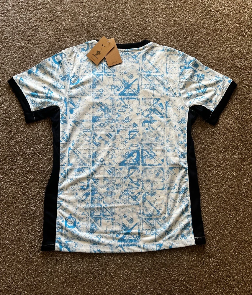 All sizes 1 for 1 Amazing quality All tags and patches Message me for your size at purchase and I’ll send you that one. The Nike Portugal Away Jersey is a high-quality soccer jersey made in Thailand. It is a men's medium size and is designed to keep you cool and dry with its Dri-Fit technology. The jersey is officially licensed and features the Portugal national team's colors and logo. It is a great choice for soccer fans and players alike.