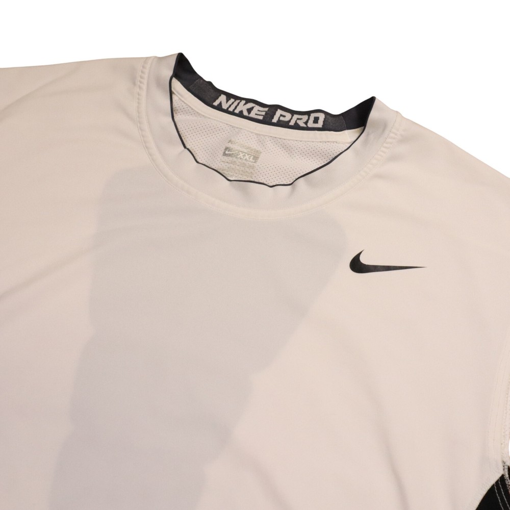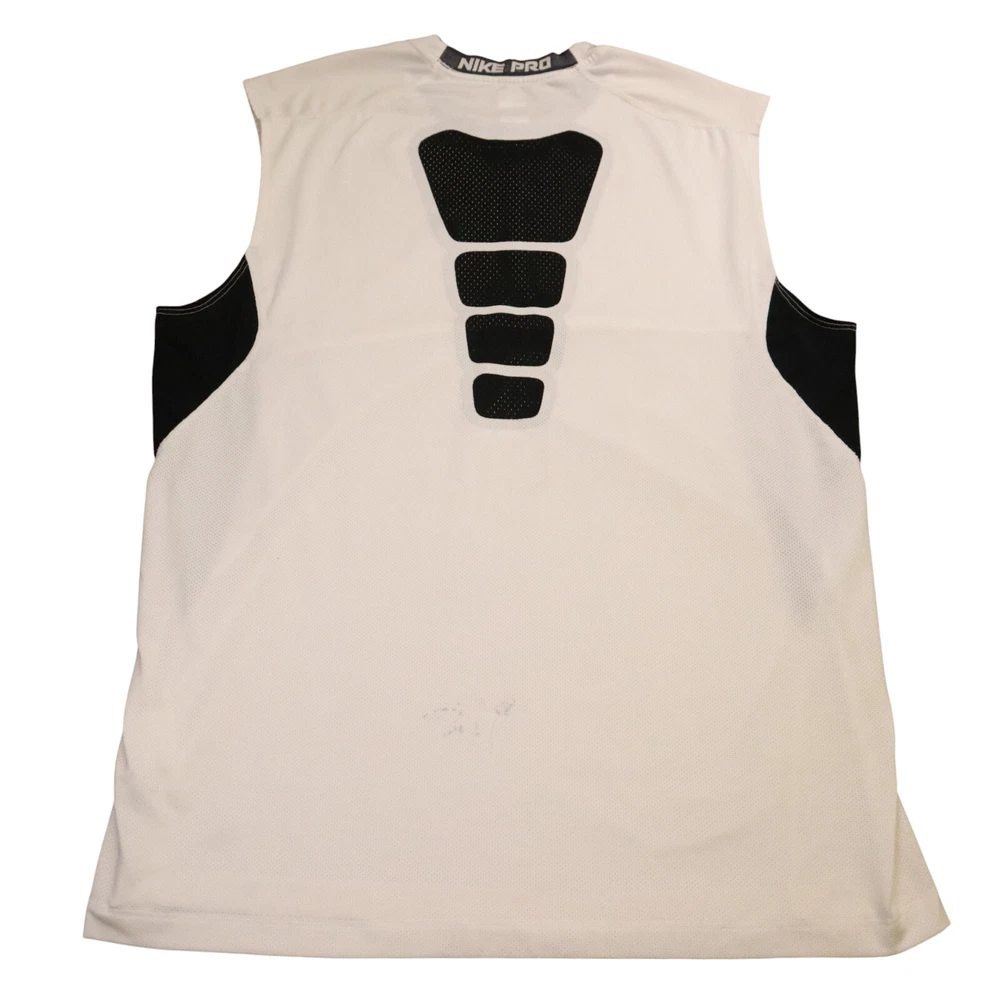Fit: Athletic Fabric Wash: Medium Compression Level: Moderate Chest Size: 42 in Seller Notes: “This shirt is in good used condition with a small stain on the lower back.” Fabric Type: Jersey Size Type: Regular Garment Care: Machine Washable Features: Breathable, Lightweight, Stretch Theme: Logo, Outdoor, Sports Collar Style: Band Brand: Nike Performance/Activity: Cross Training, Gym & Training, Running & Jogging Accents: Logo Country/Region of Manufacture: Mexico Type: Tank Vintage: No Shirt Length: 31 in Pattern: Solid Size: 2XL Material: Polyester, Spandex Season: Fall, Spring, Summer, Winter Product Line: Nike Pro Occasion: Activewear, Casual Closure: Pullover Sleeve Length: Sleeveless Neckline: Crew Neck Style: Pullover Color: White Department: Men