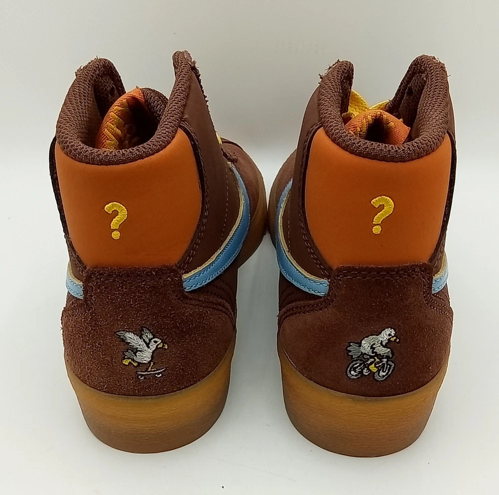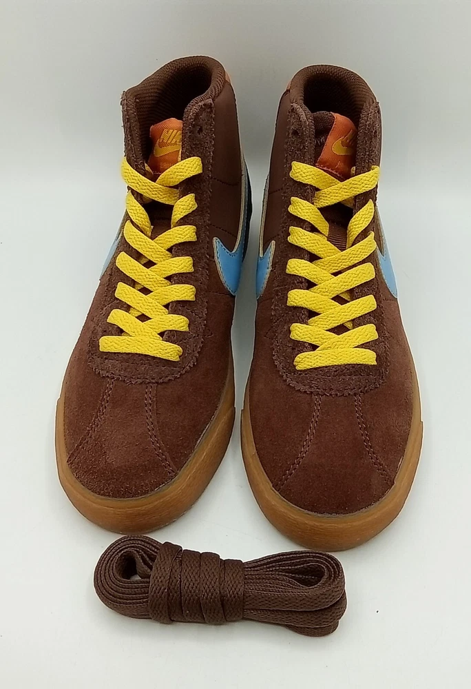 NEW with Box (Box missing top). Elevate your skateboarding game with the Nike SB Bruin High "Why So Sad?" sneakers in a women's size 6. These high-top shoes feature a lace-up closure and suede upper material in a stylish brown color. The shoe shaft style is perfect for casual occasions and school activities, while the standard shoe width provides comfort for all-day wear. The Nike SB Bruin High sneakers are part of the Nike SB product line and boast a 2022 release year. The style code is DX4325 200, and the shoes were manufactured in Indonesia. With their unique design and excellent performance, these sneakers are perfect for women who love athletic activities like skateboarding.