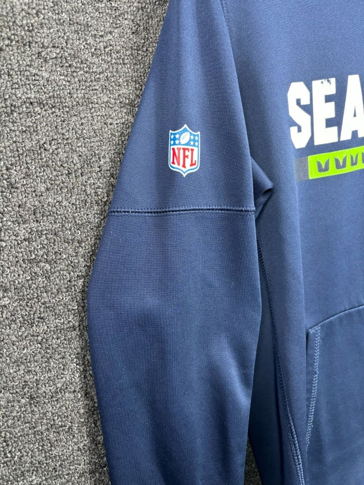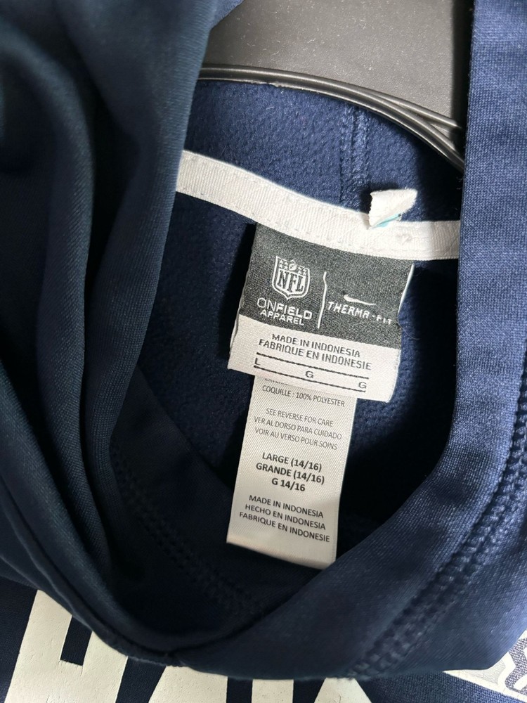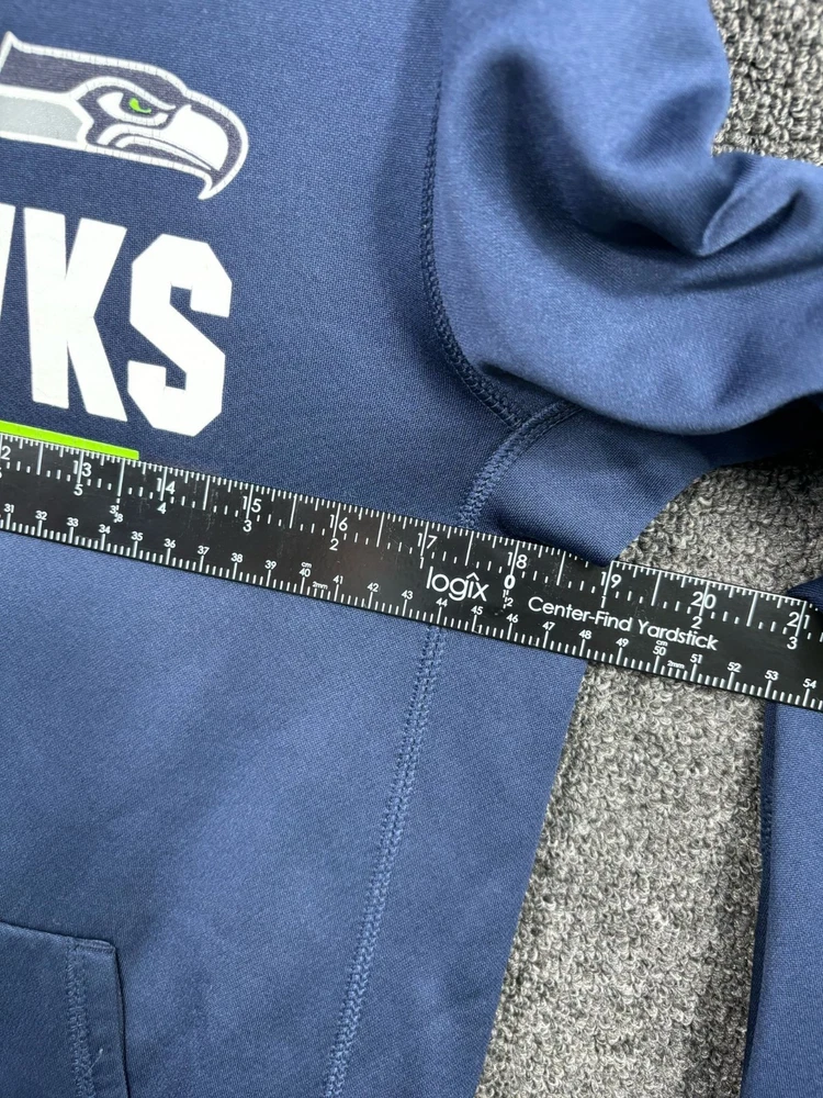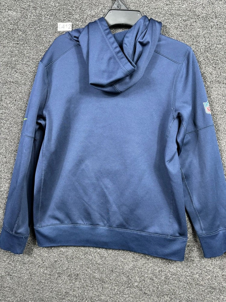 Nike Seattle Seahawks NFL Therma-Fit Hoodie On Field Apparel Youth Size L (14-16) Blue Long Sleeve 100% Polyester 10/10 Perfect Condition No Stains or Flaws Measures Approx 22.0 inch Length, 18.0 inch Pit to Pit