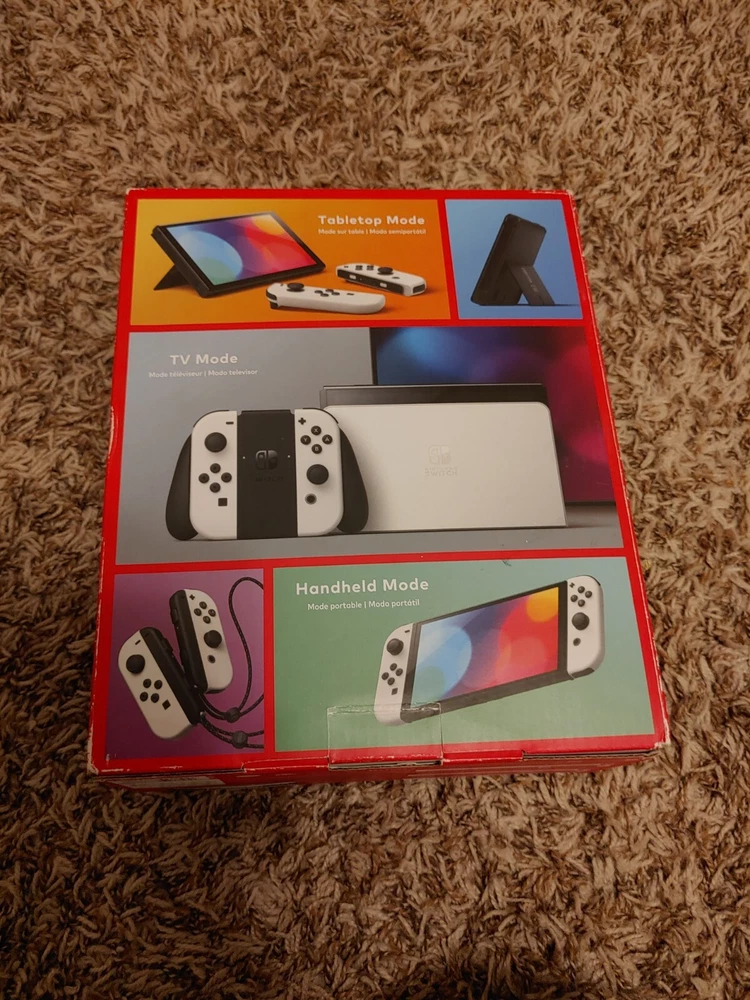 Everything with original box for the OLED Switch. The tablet is in good condition and has some wear. Has been kept with a screen protector. Everything else is excellent.