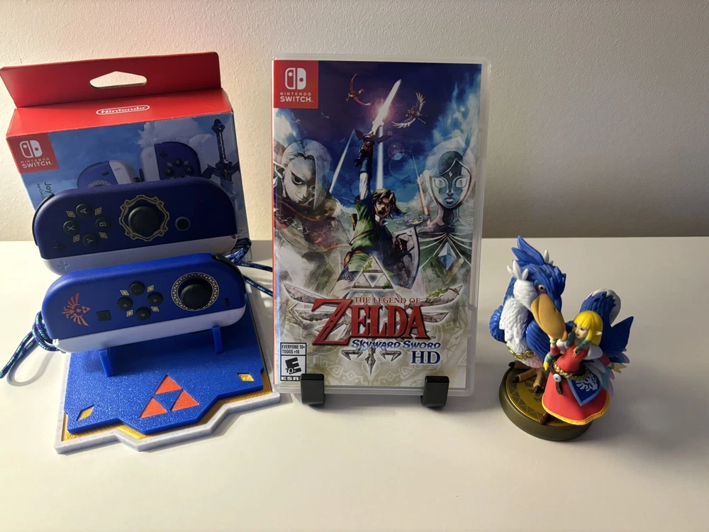 This bundle includes; -Skyward Sword HD Game -Skyward Sword Joy Con -3D printed Joy Con Display -Skyward Sword Loftwing Amibo See pictures for details. Free shipping!