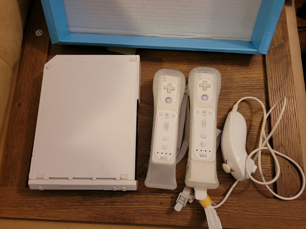 Nintendo Wii Console W/ 2 Games, Accessories, Box And Controllers Tested Working. Wii Sports console and 2 video games. In original box, box has some wear. Includes: Wii Console, console stand, 2 Wii remotes/ controllers with jackets, Nanchuck, Sensor bar, AC adapter and AC cable. Does not include sports disc. Includes Rayman Raving Ribbons 2 and Spore Hero Wii games, both complete with manuals. Pre-owned, tested and working.