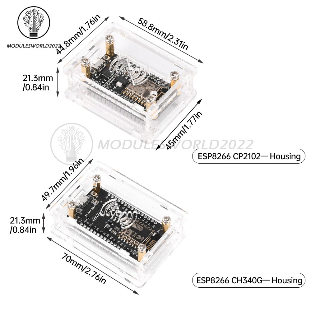 Store Categories Store Categories Other Product View Details Features 1. Physical Protection: Protect the internal electronic components from dust, moisture and external shocks. 2. Aesthetically pleasing: Transparent design allows you to see the internal structure while maintaining a clean appearance. 3. Easy to install: designed with screws for easy disassembly and maintenance. 4. Good heat dissipation: acrylic material has good heat dissipation performance, which helps to keep the development board temperature stable. 5. Improved safety: prevent electric shock and short circuit, protect the user in the commissioning and use of the process of safety. Specification Transparent acrylic protective case (not including the development board) ESP8266 CP2102 development board shell size: 58.8 * 44.8 * 21.3mm ESP8266 CH340G development board shell size: 69.7 * 49.7 * 21.3mm ESP32 CP2102 development board case size: 62.2 * 44.3 * 21.3mm ESP8266 CP2102 development board: Main control chip: ESP-12E Serial driver: CP2102 Interface: Micro USB Communication function: WiFi Pin number: 30Pin Operating voltage: 2.5V-3.6V Operating current: average current 80mA Operating Temperature: -40℃~125℃ ESP8266 CH340G development board: Main control chip: ESP-12E Serial driver: CH340G Interface: Micro USB Communication function: WiFi Pin number: 30Pin Working Mode: Support STA/AP/STA+AP Operating temperature: -40℃- 125℃ Package Included Depends on your choice Shipping Policy Payment Method Returns Policy Shipping Policy Payment Method Returns Policy Home Payment Shipping About us Contact us Copyright©2018 datacaciques Home Payment Shipping About us Contact us Store Categories Store Categories Other Product View Details Features 1. Physical Protection: Protect the internal electronic components from dust, moisture and external shocks. 2. Aesthetically pleasing: Transparent design allows you to see the internal structure while maintaining a clean appearance. 3. Easy to install: designed with screws for easy disassembly and maintenance. 4. Good heat dissipation: acrylic material has good heat dissipation performance, which helps to keep the development board temperature stable. 5. Improved safety: prevent electric shock and short circuit, protect the user in the commissioning and use of the process of safety. Specification Transparent acrylic protective case (not including the development board) ESP8266 CP2102 development board shell size: 58.8 * 44.8 * 21.3mm ESP8266 CH340G development board shell size: 69.7 * 49.7 * 21.3mm ESP32 CP2102 development board case size: 62.2 * 44.3 * 21.3mm ESP8266 CP2102 development board: Main control chip: ESP-12E Serial driver: CP2102 Interface: Micro USB Communication function: WiFi Pin number: 30Pin Operating voltage: 2.5V-3.6V Operating current: average current 80mA Operating Temperature: -40℃~125℃ ESP8266 CH340G development board: Main control chip: ESP-12E Serial driver: CH340G Interface: Micro USB Communication function: WiFi Pin number: 30Pin Working Mode: Support STA/AP/STA+AP Operating temperature: -40℃- 125℃ Package Included Depends on your choice Shipping Policy Payment Method Returns Policy Shipping Policy We will arrange shipping for you within 24 Hours after payment cleared except the holidays. -We ship items to Worldwide. Thank you! -we will ship out the order in 1-2 business days after payment cleared .Since it is international shipping ,delivery time is about 15--28 business days to arrive to most countries. Payment Method We accept PayPal payment ONLY, and must be received within 5 days from the date of purchase. 2. It is easy and safe for you to pay by credit cards, debit cards, bank transfers and PayPal account balances. 3.Buyers are responsible for import duties,custom fees and taxes, if any, please check your country. Returns Policy 1.We believe our items are so outstanding. We are convinced you will be happy with your Purchase. 2. If you do not satisfy with our items. Please simply return to us within 30 Days in original condition. Just pay for the returned postage. Then we can issue full refund or resend the item to you after the returned item arrived at our warehouse. 3. Please include your eBay ID and item number with any email requests.