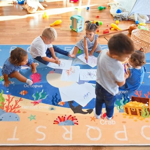30 Days Return Policy Fast Delivery Trusted seller Kids Rugs for Playroom,78.7"X59" ABC Alphabet Whale Kids Rug,Non-Slip Ocean Kids Rug Play Mat,Washable Educational Classroom Rug Kids Area Carpet for Kids Room Bedroom Nursery Playroom Product Description 【✨Super Soft and Comfortably Warm Feeling✨】This kids rugs for playroom measures 59 inches x 78.7 inches (150 cm x 200 cm), large enough for children to play games and toys. Made of artificial wool material, it is very soft and easy to clean. This lovely ocean kids carpet has a super soft, fluffy, durable, and skin-friendly surface, which can protect children's delicate skin. It can decorate children's rooms, home schools, and nursery, adding comfort to the space. 【✨ Nursery Rug with Alphabet Design✨】This ABC Alphabet kids rug features 26 alphabet pattern designs, cultivating babies' recognition of basic alphabet letters, making this soft whale kids room rug both a cartoon kids play mat and an educational and learning kids area rug. The cute marine life elements and images of this soft kids playroom rug also make the children's room a vibrant space, perfect for decorating children's playrooms, nursery, and photography props. 【✨Non-slip Backing and Easy to Clean✨】Carefully crafted with delicate edge stitching, you don't have to worry about any fraying! The bottom of the carpet has small non-slip dots to prevent it from sliding on the floor, adding softness and comfort to your home. For daily cleaning, you can use a vacuum, broom, or cloth to prevent dust and debris from building up in the carpet fibers. For a deeper clean, the kids washable rug can also be washed and dried in the washing machine. 【✨Simple Kids Area rug Suitable for Multiple Scenes✨】Our soft classroom rug brings perfect decoration and a warm feeling to any room. This Educational cartoon Kids Rugs is suitable for nurseries, kids playroom, bedrooms, living rooms, conical tents, reading rooms, kindergartens, preschools, child care centers, or terraces as a play mat, baby crawling mat,nursery carpet, classroom carpet etc. It is also a perfect baby shower gift or Christmas gift, and even a daily gift. 【✨Note✨】Due to packaging and transportation, t may be some creases on the surface, but don't worry, they will usually disappear after a few days. To make the creases disappear faster, we recommend using a steam iron on the creases or placing a book or heavy object on them. If you have any questions, please feel free to contact us. We promise to resolve your issue within 24 hours. Shipping Returns Payment Shipping Shipping is FREE to all addresses other than APO/PO boxes in the lower 48 states. All our stock ships from US-based warehouses. Shipped via USPS or UPS (depending on location and package weight) Unless stated otherwise, all orders will ship within 24-72 hours of your payment being processed. Check our feedback to see the great reviews of FAST shipping we offer. Returns As our valued customer, we will do our best to make sure the product you receive arrives to you on time and as expected. If you are not satisfied with your purchase, please contact us within 30 days of receiving your order to process a return. Payment We currently accept payment via eBay managed payments only. Once payment is cleared, we will dispatch your shipment within 1-3 business days. Please refer to the "Shipping" tab for more information regarding shipping speed to your destination.