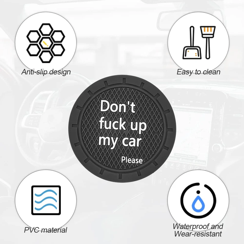 【Thickened & Durable】: The cool car coaster is made of soft and flexible PVC material, which is very durable, resistant to wear and tear, high temperature and not easily deformed. The eco-friendly material is absolutely odorless, so you can use it without worry. It can protect your car cup holder from scratches and abrasions, effectively waterproof and dust-proof. 【Universal & Anti-Slip】: The 2.75" diameter and 5mm thickness allows it to fit a wide range of 98% of the cars on the market. We recommend that you double check that the size fits before placing your order. The groove design can effectively reduce water droplets seeping into the cup holder and enhance the grip of the bottom of the cup so that the cup will not shake violently. 【Easy to Use & Clean】: This waterproof car coaster is very easy to use and the insert design makes it easy to be put in or taken out. If you get any stains on your coaster, you can wash it with a damp towel or water and it will look new again in no time. It can be recycled for a long time, which greatly saves your money. 【Wide Application】: This multifunctional coaster can be used not only for car cup holders, but also at home, office, dining table and other places. You can find it anywhere in your life because it is very practical. It can also match all car interior accessories to enhance the class and beauty of your car. 【Practical Gifts】: The unique car coasters are perfect as a funny gift for your friends, colleagues or family. They will absolutely love this fun and practical little item. If you have any questions or issues, please feel free to get in touch with us, our after-sales team will provide you with the best solution. Product Description Car Anti-slip Coaster Our coasters for coasters are made of PVC material, no harsh smell. Non-slip and waterproof, durable. Stylish design and comfortable feel. Cleaning is simple and convenient, you can wipe it with a dry towel or a wet towel, or you can wash it in water and dry it. Not only can be used as a car coaster, the anti-scratch, wear-resistant and heat-resistant properties can also be used as a coaster for your home, dining table or tea cup, it is the perfect protection for your original car cup holder. Soft material Made of high-quality pvc soft rubber, soft and elastic, durable and not easy to deform. Suitable size The 2.75" diameter makes it suitable for 98% of the car models on the market. We recommend that you double check the size before placing an order. Thick material The thickness of the coaster reaches 0.2in, which is more wear-resistant and durable, and not easy to be damaged.