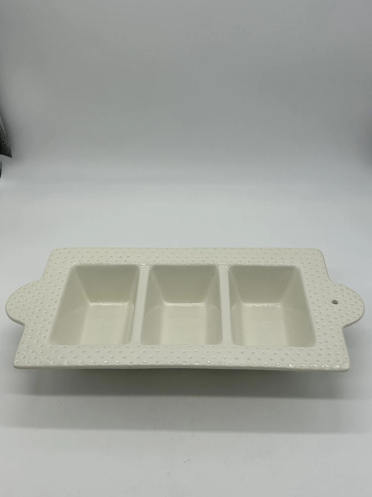 Nora Fleming I5 Swiss Dot 15" x 7" Divided 3-Section Garnish Relish Dish RETIRED
