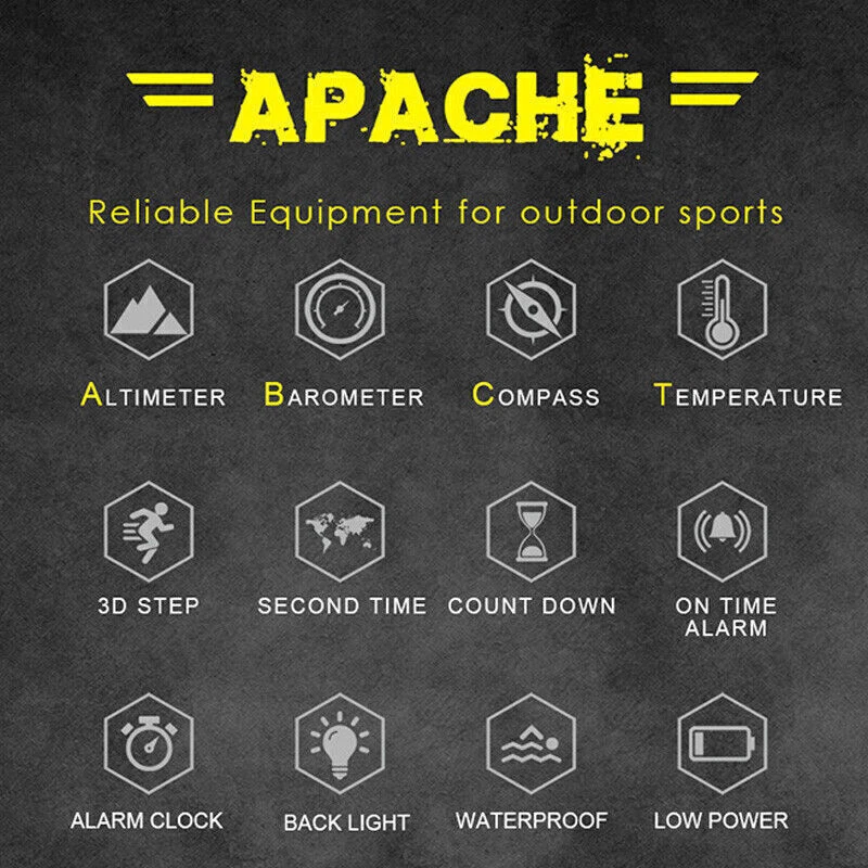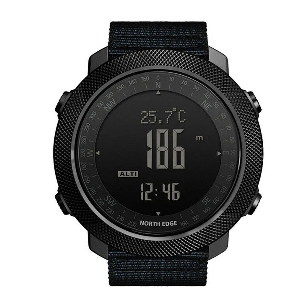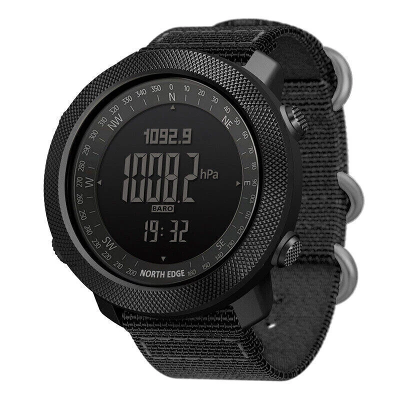 Description: North Edge Apache 3 Smart Military Sport Digital Barometer Barometer Watch Men A Characteristic: 1. It is waterproof in depth, up to 50 meters deep. It can accompany you to swim in the water world and give you advice on time in different places 2. High strength outdoor use function, making you not confused outdoors 3. The product is designed with compass and backlight, and the light is weak, which can soothe the soul 4. When there is no direction, it can accompany you out of difficulties and around Function: 1. Altimeter (altitude trend chart and rising speed) 2. Barometer 3. Compass 4. Thermometer 5. Weather forecast, world time 6. Pedometer, calories, distance recording 7. Time function: hour, minute, second, year (2000-2099), month, day, week 8. Alarm clock (2 alarm clocks) 9. Countdown (99:59:59~0) 10. Stopwatch (0~: 59:59), 12. Second time function 13. Compass, altimeter, barometer, thermometer, barometric trend, altitude trend and altitude trend 14. Button tone on or off 15. Battery life reminder 16, EL backlight Wearing mode: wrist strap Communication function: not supported Battery model: CR2032 Operation mode: button type Product size: 46 * 46 * 14mm Net weight of product: about 95g Screen resolution: 240 * 240 Wrist strap material: nylon Band width: 22mm Function: waterproof 50m Band size: about 26cm Endurance: 21 days and above Color classification: black Screen type: IPS Product List: Watch * 1 Instructions * 1 Payment: We accept PayPal ONLY currently. Please make sure you have a valid/confirmed PayPal account prior buying. Item will be shipped within 1-5 business days as soon as the payment verified. We ship to PayPal registered address, please make sure your address in PayPal was matched with your current location. Shipping: Shipping Estimated Delivery Time 1.Economy(without tracking): 11-35 working days 2.SpeedPAK(with tracking): 8-12 working days 3.EMS(with tracking): 7-10 working days, need to pay extra shipping cost 4.DHL(with tracking): less than 7 working days, need to pay extra shipping cost For faraway region or countries, the transit time may be longer than Overall Transit Time Frame. Notes, the delivery time may vary due to public holidays, natural disasters, customs issue and other unexpected impact, etc. Feedback: Please leave us a Positive Feedback if there is nothing wrong with the item, we will appreciate it and do the same for you.