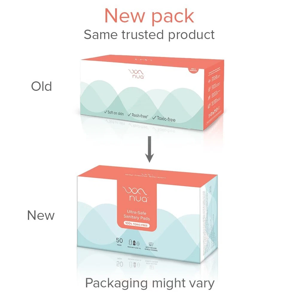Nua Ultra-Safe Sanitary Pads For Women |50 Ultra Thin Pads | Medium-XL | Safe on Skin | Toxic-Free & Rash-Free | Unscented | 50% Wider Back | Leakproof | With 50 Secure Shield Covers| Made Safe About this item SAFE FROM HARMFUL CHEMICALS: No Phthalates, No Dyes, No Fragrance SAFE FROM RASHES: Dermatologically-tested, Safe on Skin SAFE FROM LEAKS: 50% wider back and a super absorbent core for supreme coverage and absorbency. Hydrophobic leak guards repel liquid to prevent spills and stains. 50 Medium flow (XL - 280mm) sanitary pads. Comes with 50 individual biodegradable secure shield covers that are easy to carry. These are not just discreet, but also help in secure, worry-free disposal. CERTIFICATIONS: Nua is Made Safe Certified by Safe Cosmetics Australia. - S h i p p i n g P o l i c y – Usually we ship all items within 2-3 days of receiving cleared payment except Sunday & Holiday in India. In case of any delay, you will be duly informed and will update you with the expected date of dispatch Note - Delivery time depends on destination and other factors. This is expected time of delivery and sometimes it may takes longer period of time because of your Countries Custom Clearance. - C u s t o m P o l i c y – Import duties, Taxes and Charges are Not Included in the sale price. These charges are the Buyer's responsibility. - R e t u r n P o l i c y – We accept returns within 30 days. Refund or Exchange will be made only after we receive the faulty item. If the item(s) are mishandled, physically damaged or distorted in any form other than the original factory condition refund/exchange will be cancelled. Please note that all faulty items must be reported to us within 7 days from the date of receipt. If you need any further information or have any query, please feel free to contact us. We will respond to you at the earliest. - F e e d b a c k - Please note that your feedback is always important for us. In case you have any problem with your purchase or the item, please do contact us, we will always be there to help you. Please don't open a case or leave a negative feedback without contacting us. If you contact us, we will try to solve the issue in your favour faster than eBay Resolution Centre Process. To see our full range of products, visit our eBay Store . Looking forward for your Positive Feedback!!! Happy Shopping