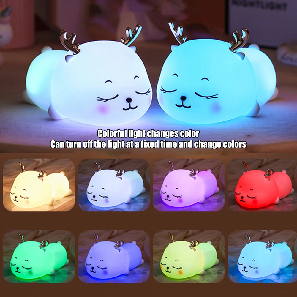 Nursery Night Lights Cute Night Light Colorful Deer Lamp Floor Lamp typical Bullet Points: Decoration Delight: Adorably shaped like a deer, this cute silicone night light brightens every corner with a warm atmosphere, making it perfect for children's rooms, bedrooms, or studies Soothing Ambiance: Immerse yourself in a calming and inviting ambiance with our silicone night light, offering colorful lighting effects and versatile lighting modes. Choose different colors and effects to relax and unwind as per your preferences Eye-Caring Night Light: Delivers a gentle glow with its eye-friendly design and soft light source: perfect for nocturnal usage without disturbing sleep. This non-glaring illumination is safe for your kids' eyes, ensuring an added layer of protection Efficient Energy-Saving: With a timing function, the silicone night light turns off automatically, conserving energy for you. Ideal for nighttime use, this light allows you to enjoy easy illumination without worrying about unnecessary energy usage. Convenient time setting options are also available, giving you complete control Long-Lasting: Made from only the safest high-quality silicone, our night light provides a soft and comfortable touch perfect for daily use by children. This solid and sturdy design is resistant to falls and wear, offering peace of mind and long-lasting reliability Check out our toddler night light in a cute deer shape! With different lighting modes to choose from, you can customize the ambiance to your liking. Plus, with built-in timing function and soft touch, it's safe and healthy for your child's eyes. Specification: Product Name: silicone night light Color: White Style: Cartoon Average service life: 10000 (h) Light source power: 1.5W Battery capacity: 1200MAH Voltage: 5V Packing List: Cute deer night light x1 Data cable x1 Note: 1. Due to the different display and lighting effects, the actual color of the product may be slightly different from the color shown in the picture. Thanks! 2. Due to manual measurement, a measurement deviation of 1-3cm is allowed. 1.You can make a Credit payment via Paypal.Paypal will let you use MasterCard,Visa to pay. 2.Payment should be completed within 5 days after auction closed, or unpaid dispute will be filed for an closing auction.An unpaid case will be filled after 4 days. ● We strive for 100% customer satisfaction ! ● Positive Feedback is very important to us. ● We hope that you contact us immediately BEFORE you give us neutral or negative feedback, so that we can satisfactorily address your concerns. ● We promise to offer the lowest price and high quality produce. Dear buyers : ● Welcome to my store ! ● Your satisfaction is our top goal,we appreciate your patronizing. ● If you have any questions, please contact us before leave negative or neutral feedback, we will try our best to solve the issue to your satisfaction, thanks ! ● If you are satisfied with our service, please rate the details of the transaction (Detailed Seller Ratings) on eBay. ● Please always talk to us via ebay Message. ● We appreciate your business and look forward to growing our e-Bay sales with satisfied customers.