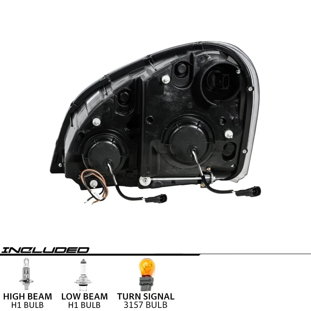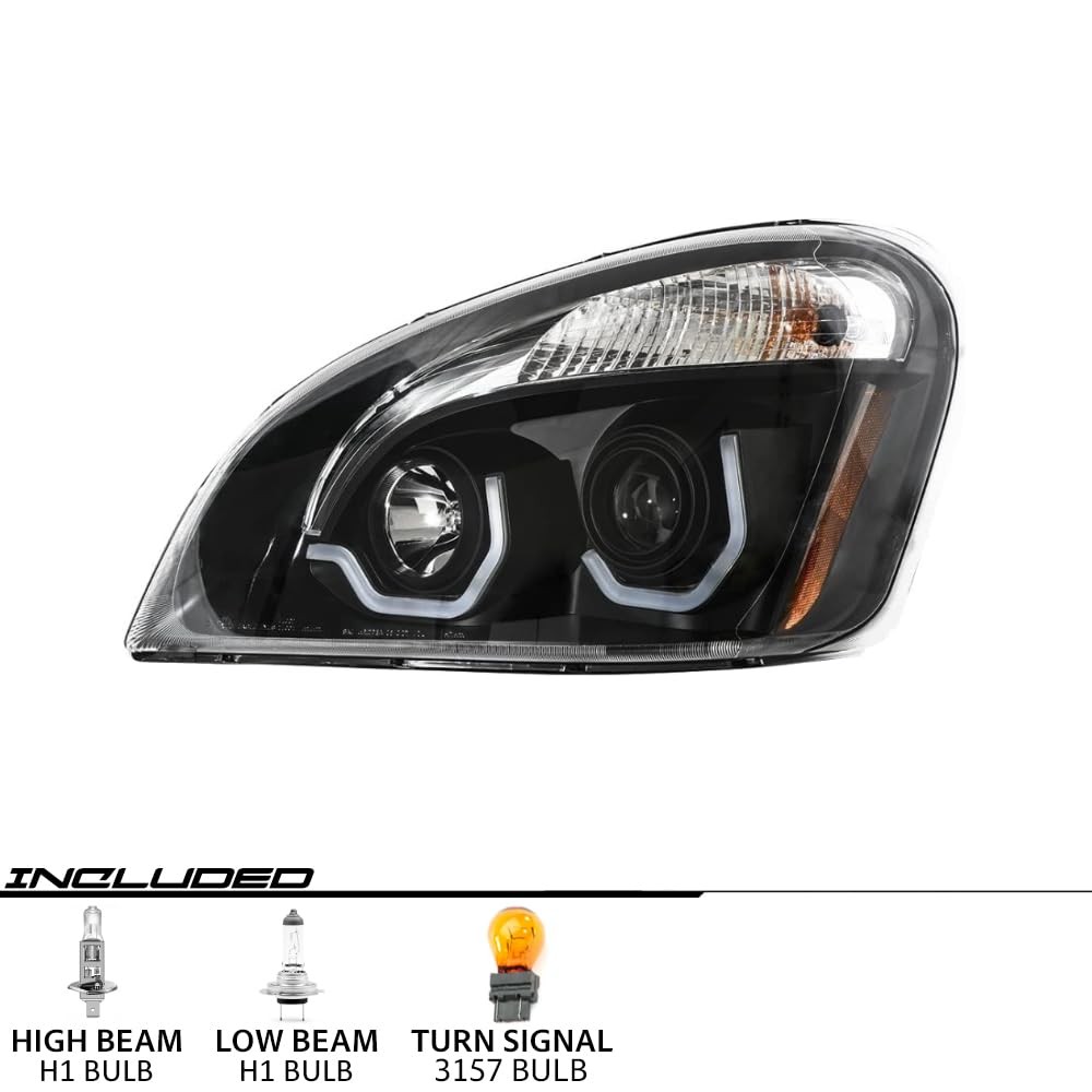 OE Style Halogen Headlights Black Bezel w/White LED Running Light Assembly Replacement for FREIGHTLINER 08-17 CASCADIA [ A0651907006 A0651907007 ] Pair About this item 1、Headlights | Pair 2、Lens & Housing Only | No Bulbs 3、Easy Installation Part 4、DOT and SAE Compliant 5、1 Year Unlimited Mileage Limited Warranty Product Description Headlights Assembly | Pair FEATURES - DOT/SAE Compliant - OE Style Fitment Product PartsLink Number: Number: A0651907006 A0651907007 A0651907000 A0651907001 Bulbs and Accessories Notice Please note that the standard product offering does not include bulbs. Some packages may contain bulbs and other accessories, however are not covered by the warranty, as it only applies to the main assembly. Please contact seller if you have any inquiries prior to making a purchase. FITMENT Some trims may not be compatible with every model year. Please check AmazonConfirmedFit to ensure compatibility prior to purchasing. Freightliner Cascadia 2008 2009 2010 2011 2012 2013 2014 2015 2016 2017 Halogen Type Headlight Black Bezel White LED Running Lights Included
