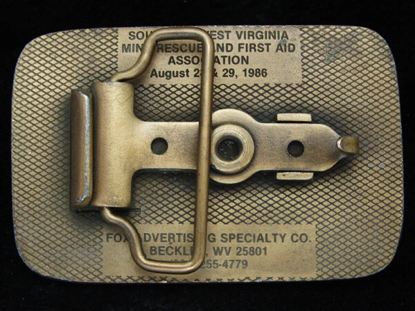 052515122 OE25122 VINTAGE 1986 *31ST ANNUAL MINE RESCUE & FIRST AID CONTEST* MINING BUCKLE REALLY GREAT BUCKLE ! Scroll Down For More Pictures (ad created with AdGen 16.5X. - posted by: GW) GENDER: UNISEX DATED: 1986 MAKER: FOX ADVERTISING SPECIALTY CO. FINISH: BRASS PLATED / BLACK ENAMEL INLAYS * GREAT VINTAGE BUCKLE !! * NICE HEAVY WEIGHT BUCKLE * PLEASE REFER TO PICTURES FOR MORE DETAILS & CONDITION COMMENTS: * GUARANTEED ORIGINAL VINTAGE ITEM !! MEASUREMENTS: 3.20" (8.1cm) Width 2.10" (5.3cm) Height 1.75" (4.4cm) Max. Belt Width Every item carefully hand measured! A GREAT ONE TO ADD TO YOUR COLLECTION !! **** IMPORTANT **** WE SELL VINTAGE ITEMS THAT MAY DETERIORATE OVER TIME. WE CAREFULLY INSPECT EACH ITEM AND TRY TO NOTE ANY VISIBLE FLAWS, BUT ARE NOT LIABLE FOR DAMAGE THAT OCCURS AFTER PURCHASE. ALL ITEMS ARE SOLD "AS IS" ONLY WITH NO WARRANTY OF ANY KIND EXPRESSED OR IMPLIED. Promotional Payment Information Payment Terms FULL PAYMENT REQUIRED WITHIN 5 DAYS OF PURCHASE! Payment Options Please see this site's payments section for available options. Shipping Information Shipping Rates U.S.A. CANADA OTHERS 1st Buckle $5.00 $12.00 $16.00 Additional Buckles $1.00ea. $2.00ea. $2.00ea. FREE U.S.A. SHIPPING ON 3 ITEMS OR MORE! FREE INTERNATIONAL SHIPPING ON 10 ITEMS OR MORE! EVERY PACKAGE NOW INSURED AGAINST LOSS OR BREAKAGE! All items shipped with a tracking # in order to comply with buyer/seller protection requirements. International Buyers *Import duties, taxes and charges are not included in the item price or shipping charges. These charges are the buyer's responsibility. *Please check with your country's customs office to determine what these additional costs will be prior to bidding/buying. *These charges are normally collected by the delivering freight (shipping) company or when you pick the item up. DO NOT confuse them for additional shipping charges. *We do not declare merchandise values below actual selling price. We also do not mark items as "gifts". U.S. and International government regulations prohibit such behavior. *Some countries customs clearance can delay arrival of your shipment up to 60 days! BEFORE BIDDING ON OR BUYING OUR ITEMS YOU MUST AGREE TO THE FOLLOWING TERMS: Buyer agrees to pay for item within 5 days of purchase. No returns accepted without prior authorization from seller. Shipping charges will not be refunded or reimbursed on returned items. ***** All items sold "AS IS" only ******