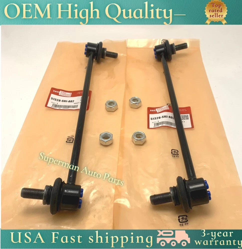 Store Categories Store Categories AAll products FOR Honda & Acura FOR Nissan & Infiniti FOR Toyota & Lexus FOR Hyundai & Kia FOR Mitsubishi & mazda FOR Buick & Chevrolet FOR subaru Clock spring & angle sensor ABS sensing oil cooler Camera Combination light switch Other OEM 2 Pcs Front Sway Bar Stabilizer End Link Set For 2005-2017 Honda Odyssey Product Specifications Brand superman-auto-parts Part Code Manufacturer Part Number 51320-SHJ-A02 *2 Part Description Link Assembly, Front Stabilizer Other Names Link, Stabilizer Link Item Dimensions 14.4 x 3.9 x 1.3 inches Item Weight 2.30 Pounds Condition New Fitment Type Direct Replacement SKU 51320-SHJ-A02 *2 Vehicle Fitment For 2 005-2017 Honda Odyssey Purchase description 1.、To ensure that the purchased accessories are 100% suitable for your car, please send us a 17 digit VIN code after purchase, and we will accurately match the correct accessories for you. 2、 If you cannot find a suitable accessory, please send us the car VIN code to check. We are a professional car accessory sales store 3、 If you need to purchase in bulk, please contact us and we will provide very favorable prices. Other Description https://www.ebay.com/str/supermanautoparts
