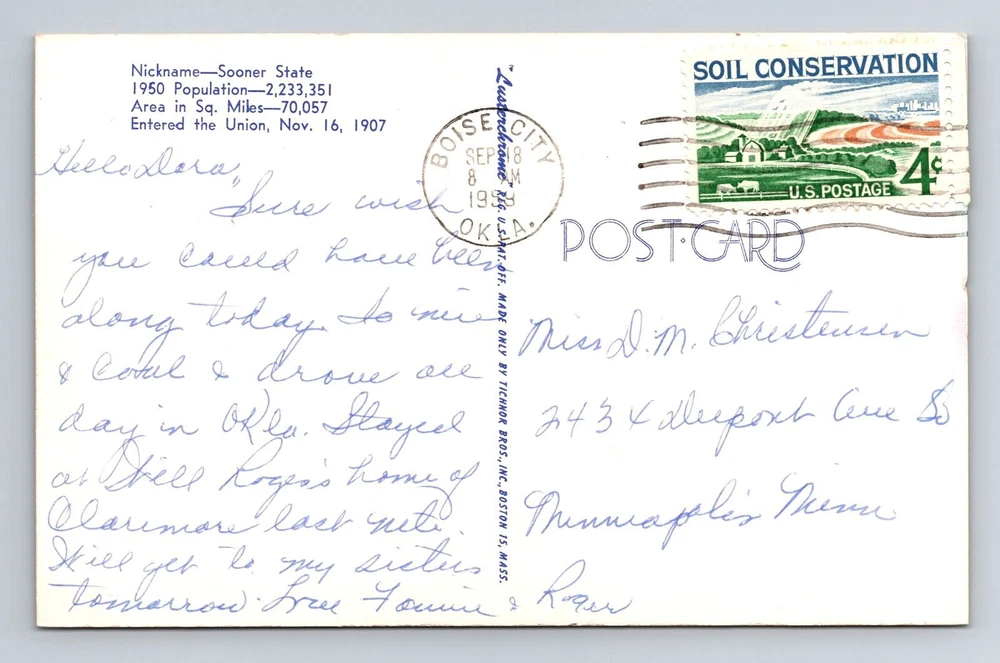 Original/Licensed Reprint: Original Region: Oklahoma Country: USA Era: Vintage Theme: Cities & Towns Type: Printed (Lithograph) Postage Condition: Posted City: Oklahoma Country/Region of Manufacture: Unknown Subject: Cities & Towns Unit of Sale: Single Unit