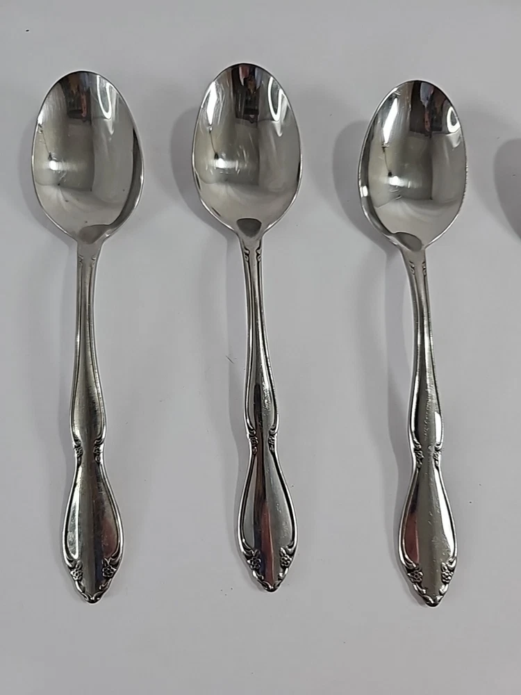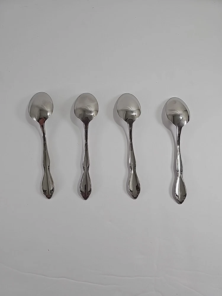 ONEIDA Set Of 4 Stainless Steel Flatware Spoons Made In USA Floral Vintage.