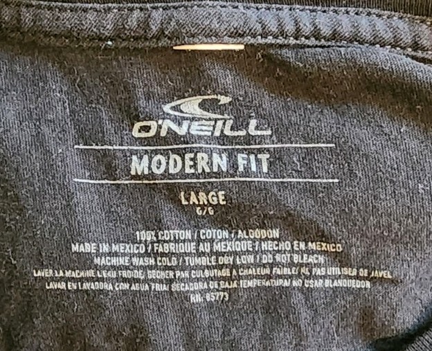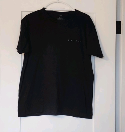 O’Neill short sleeve graphic t-shirt in black featuring a neon green skull/wave design on the back. Clean front with a modern fit and soft cotton feel. Casual surf/skate style tee. Brand: O’Neill Size: Men’s Large Fit: Modern Fit Color: Black with green graphic Short sleeves Crew neck 100% cotton Made in Mexico Condition: Good pre-owned condition. No holes or major flaws noted. Please review photos for details and overall condition.