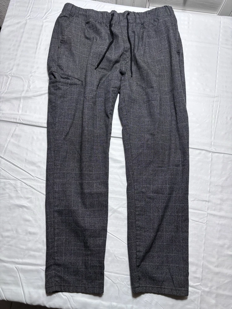 ORIGINAL USE Jogger Pants Mens Gray Black Drawstring Tapered Leg Stretch large . Pre owned shipped with usps ground advantage.