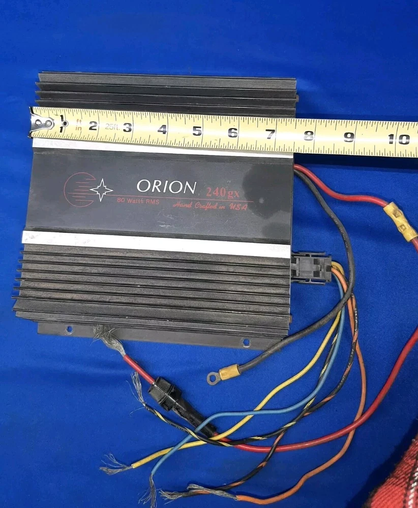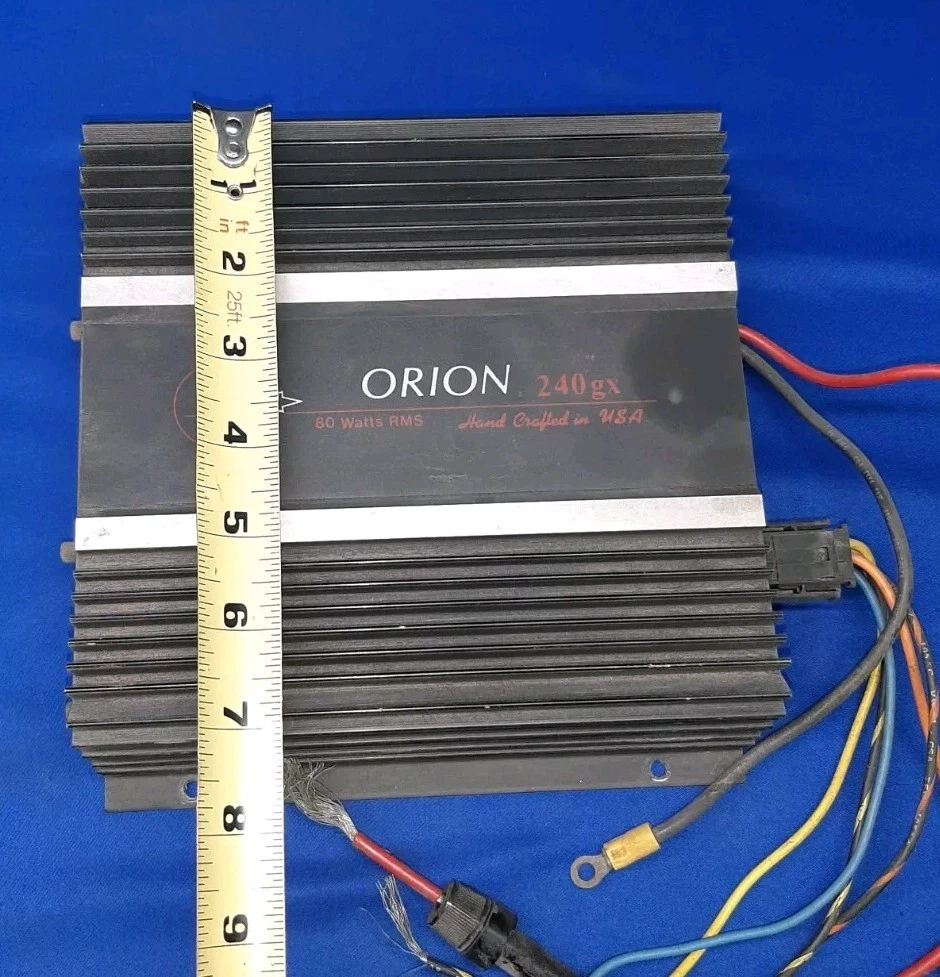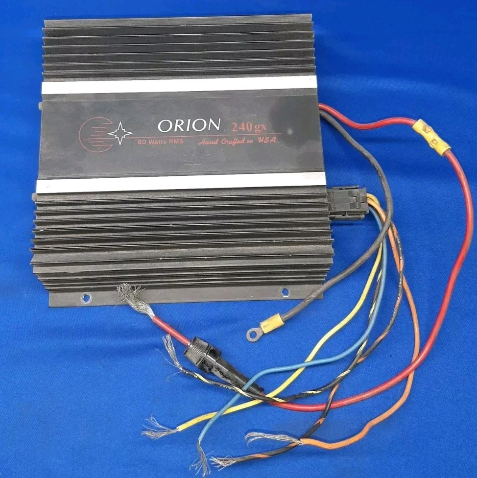 Up for sale i have an Orion 240gx amplifier in untested condition. This amp came from a storage auction and i have no way of testing it. It has lots of dust on the outside with minor wear. There is nothing damaged or broken. This item is being sold in as is condition since it is untested. You will be getting the exact amp pictured in this listing.