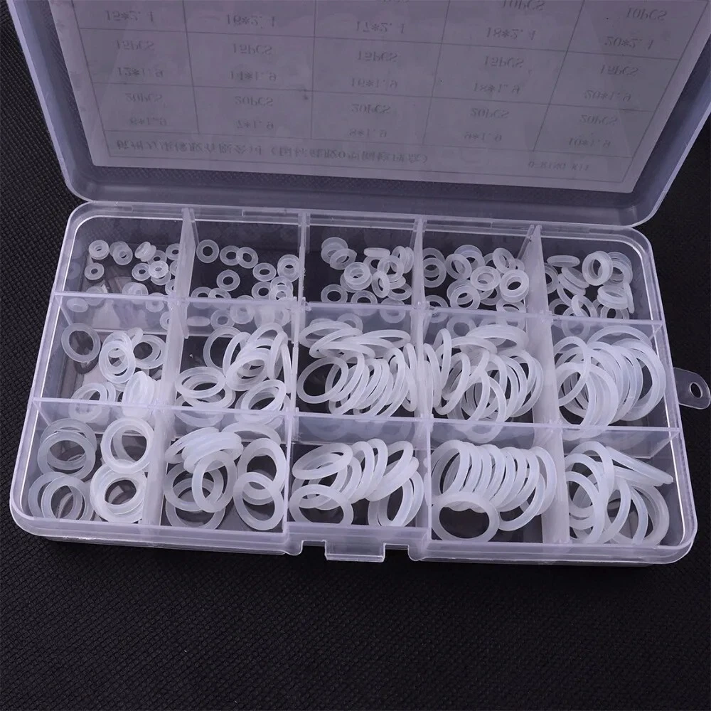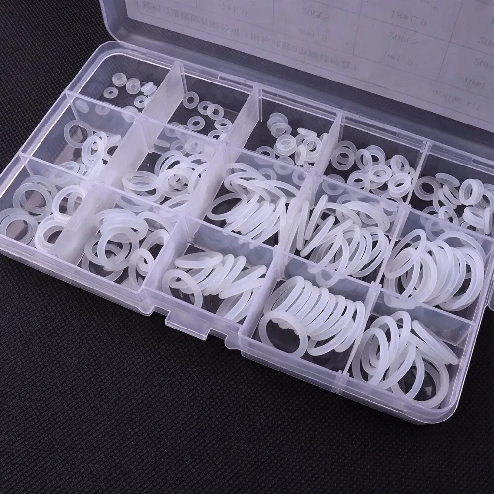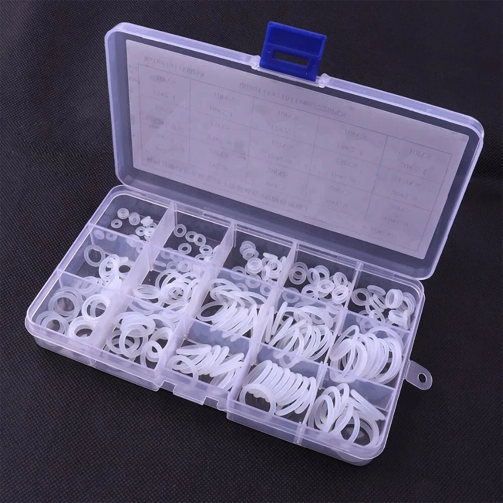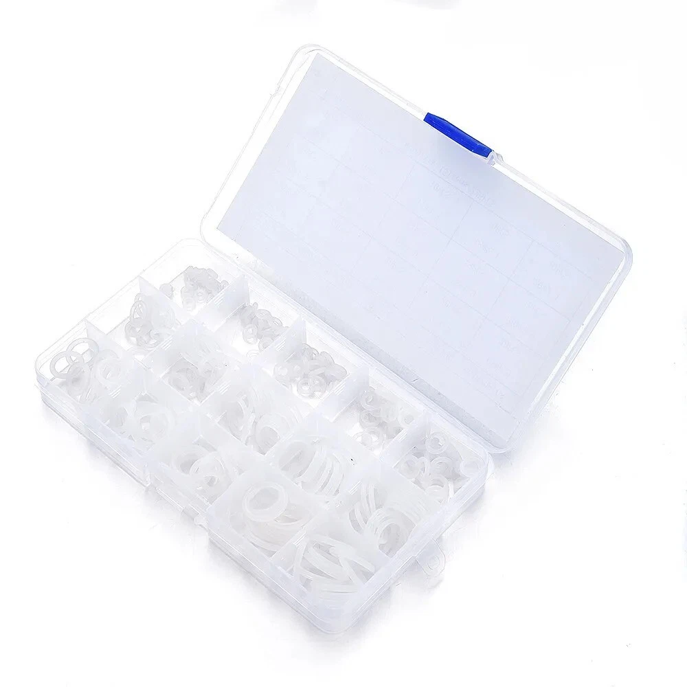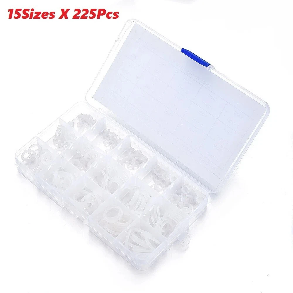 O-Ring Assortment Kit 225Pcs 15 Sizes Silicone White Mini Round Washer Seal Tool This 225-piece silicone O-ring assortment kit includes 15 different sizes of durable, flexible, and heat-resistant O-rings. Perfect for sealing, plumbing, automotive, and general repair applications, these white silicone O-rings provide excellent resistance to wear, oils, and temperature changes. The set comes in a convenient storage case for easy organization and quick access to the right size when needed. Ideal for DIYers, mechanics, and professionals. Features: Widely used as sealing rings and washer for the connectors in the hydraulic machinery, pipelines and etc. The VMQ can bear the temperature of 220 degrees centigrade, but it performs flatly in oil-proof. It is non-toxic, environmental-friendly and thermo-stable. They are small, delicate, fine, durable and strictly functional.Material: VMQ. Specification: Item: Assortment Kit Material: Silicon Color: White. Size(diameter of hole/mm*diameter of ring/mm): 6*1.9, 20pcs. 7*1.9, 20pcs. 8*1.9, 20pcs. 9*1.9, 20pcs. 10*1.9, 20pcs. 12*1.9, 15pcs. 14*1.9, 15pcs. 16*1.9, 15pcs. 18*1.9, 15pcs. 20*1.9, 15pcs. 15*2.4, 10pcs. 16*2.4, 10pcs. 17*2.4, 10pcs. 18*2.4, 10pcs. 20*2.4, 10pcs. Net weight: around 100g. Package Included: 225 x Pcs 15 Sizes VMQ O Ring Washer Seals Assortment Kit.