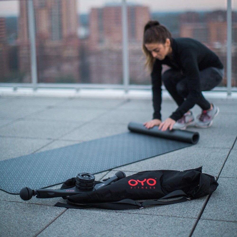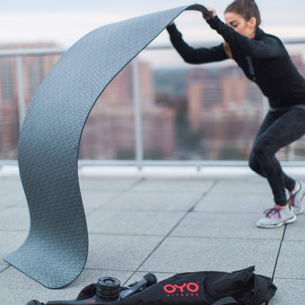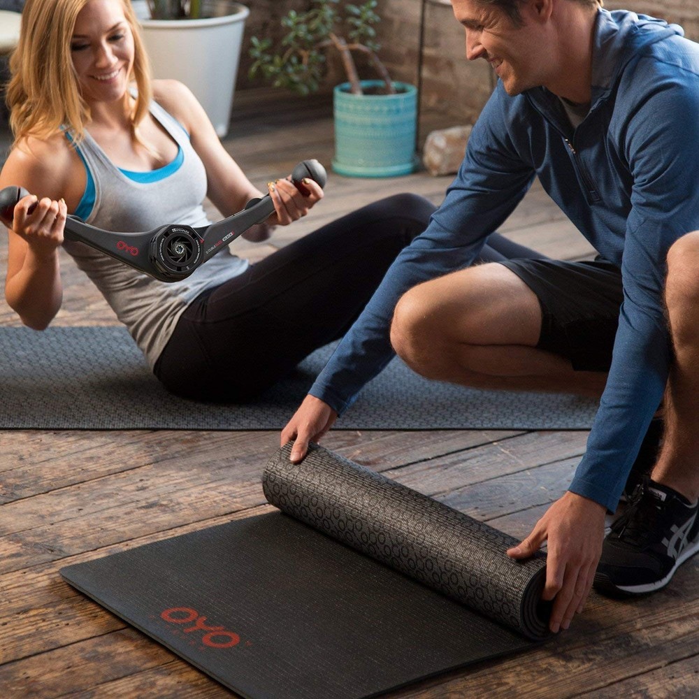 OYO Fitness Performance Exercise Mat/Yoga Mat (PVC, Reversible, Two-Tone Grey/Black, Non-Slip, 6mm / 1/4 Inch Thick) Product Details Color: Black Brand: OYO Fitness Material: Polyvinyl Chloride Product Care Instructions: Hand Wash Only Product Dimensions: 70.08"L x 24.02"W x 0.24"Th Item Weight: 0.38 Pounds Manufacturer: OYO Fitness UPC Color: Black Brand: OYO Fitness Material: Polyvinyl Chloride Product Care Instructions: Hand Wash Only Product Dimensions: 70.08"L x 24.02"W x 0.24"Th Item Weight: 0.38 Pounds Manufacturer: OYO Fitness UPC: 850017103023 868899000132 860001974737 Item Package Dimensions L x W x H: 25.5 x 4.5 x 4.5 inches Package Weight: 1.57 Kilograms Item Dimensions LxWxH: 70.08 x 24.02 x 0.24 inches Brand Name: OYO Fitness Part Number: TOP1505003 Date First Available: March 25, 2018 OPTIMUM COMFORT: The OYO Fitness Exercise Mat is made from cushioning 6mm PVC for optimum comfort while working out. ANTI-SLIP: The textured surface helps ensure your mat stays in place and provides plenty of grip. REVERSIBLE: Double color yoga mat grey with black OYO logo pattern on one side, black with red OYO logo on reverse side. EASY TO CLEAN: Wipe clean or spot clean. DIMENSIONS: 70 x 24 inches (178cm x 61cm) and weighs 0.38 lbs (0.17 kg).
