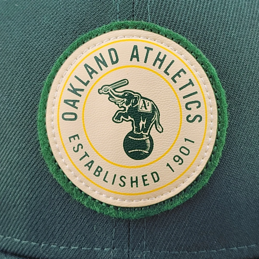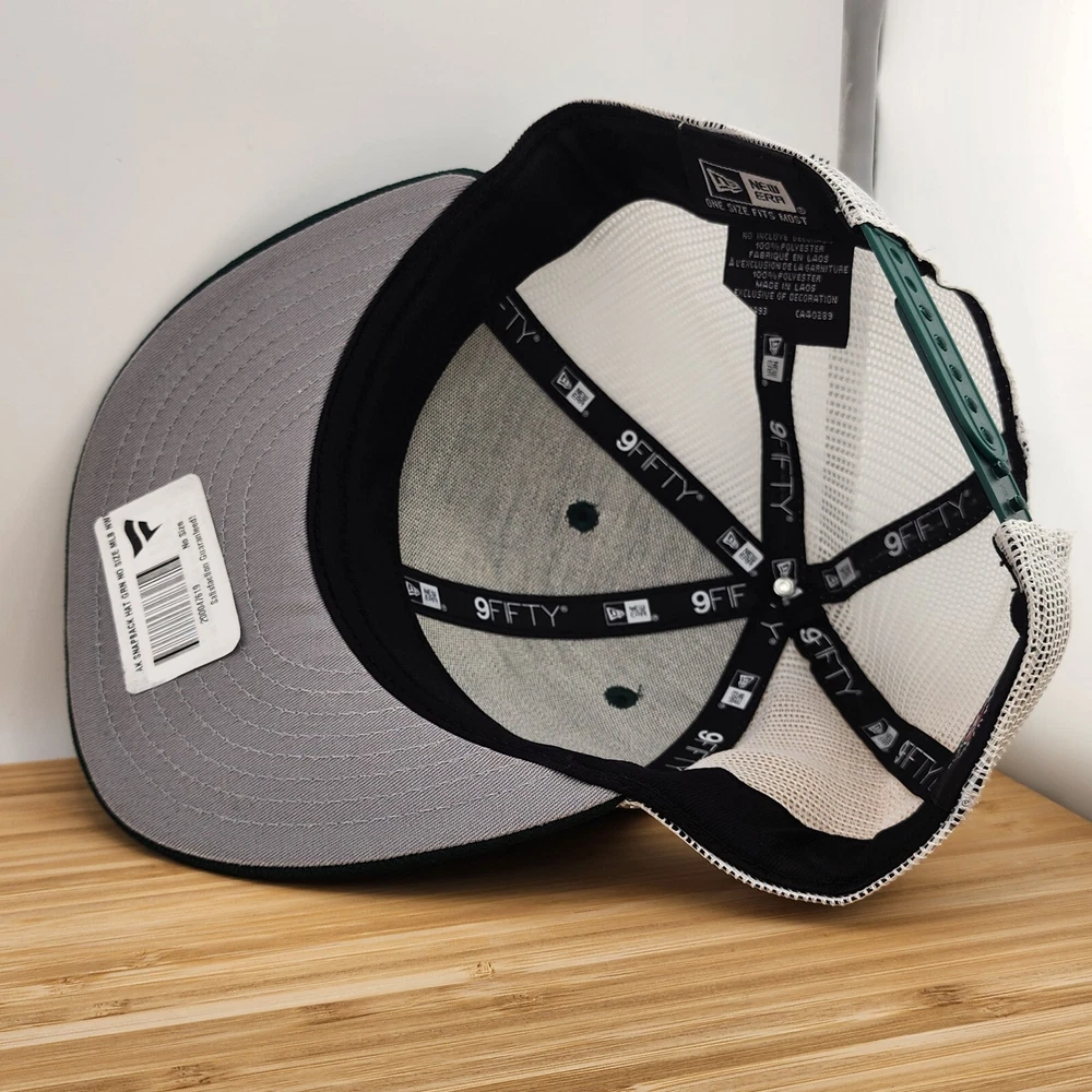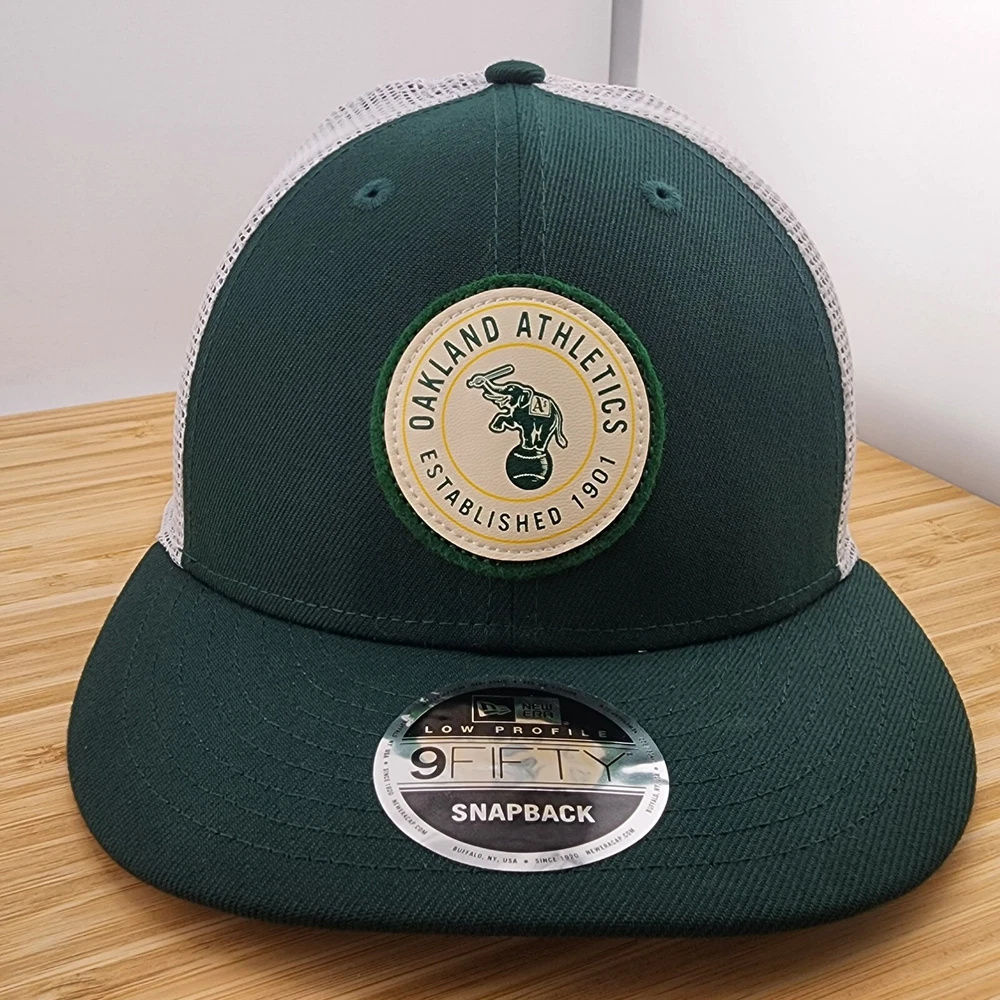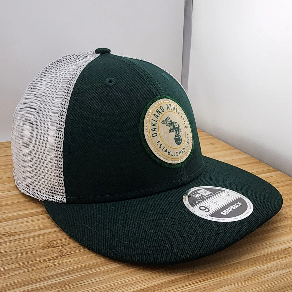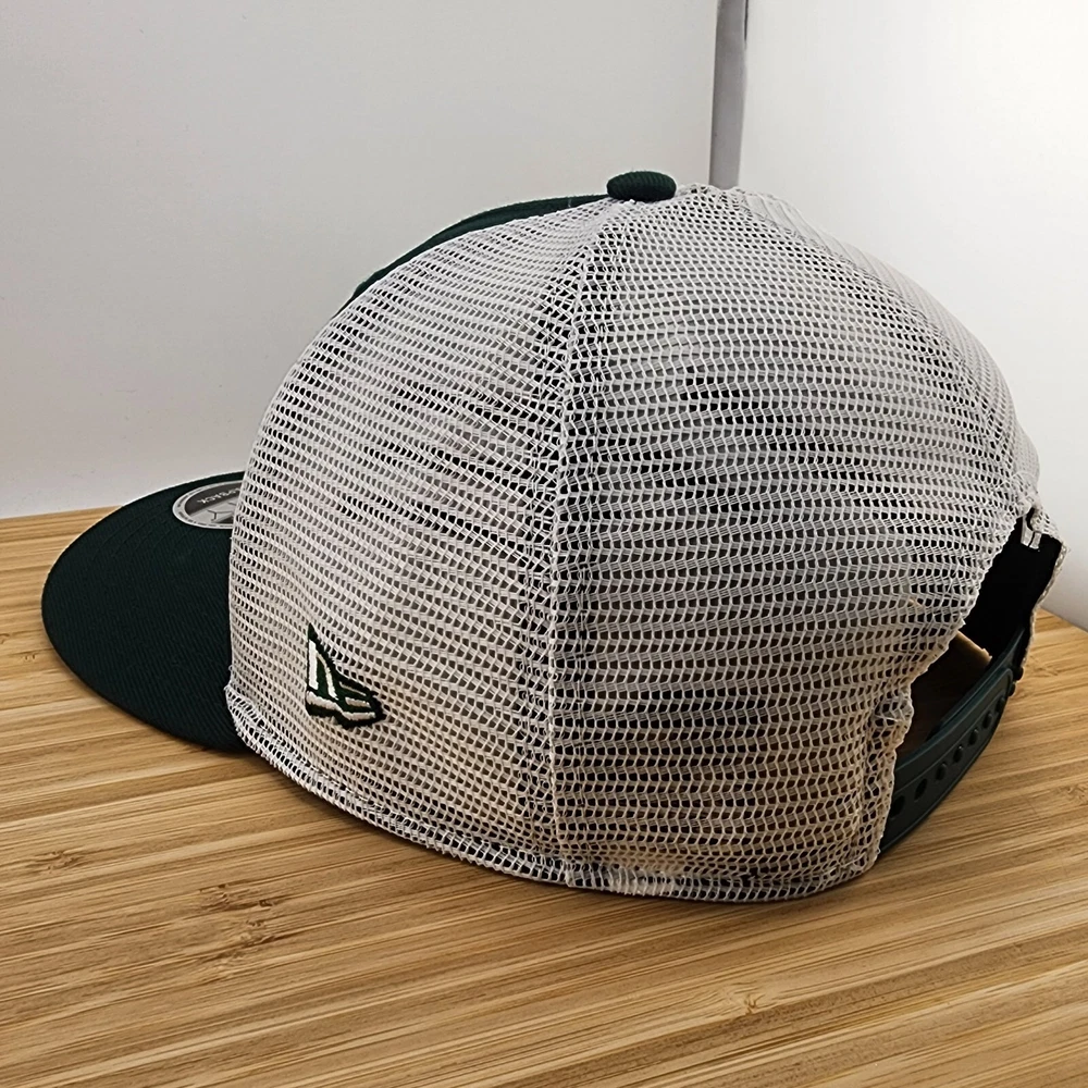 Show your support for the Oakland Athletics with this stylish trucker hat from New Era. The hat features a solid green color with a mesh back and an adjustable snapback closure to ensure a comfortable fit for all head sizes. The front of the hat features a forest green patch with the Oakland Athletics logo, adding a touch of team spirit to your outfit. This trucker hat is perfect for any occasion, whether it be for travel, casual wear, or work. The hat is made from a combination of polyester and cotton materials, making it lightweight and breathable. The hat is also designed with an animal theme and is perfect for the summer, fall, and spring seasons. Get your hands on this Oakland Athletics trucker hat today and show your support for the team!