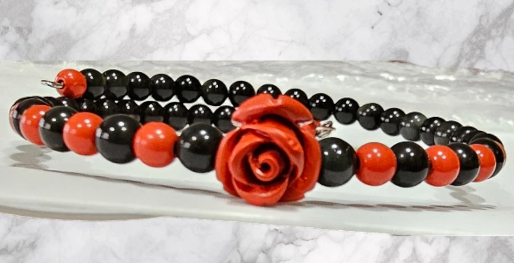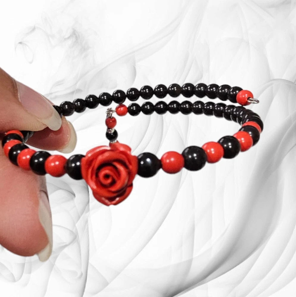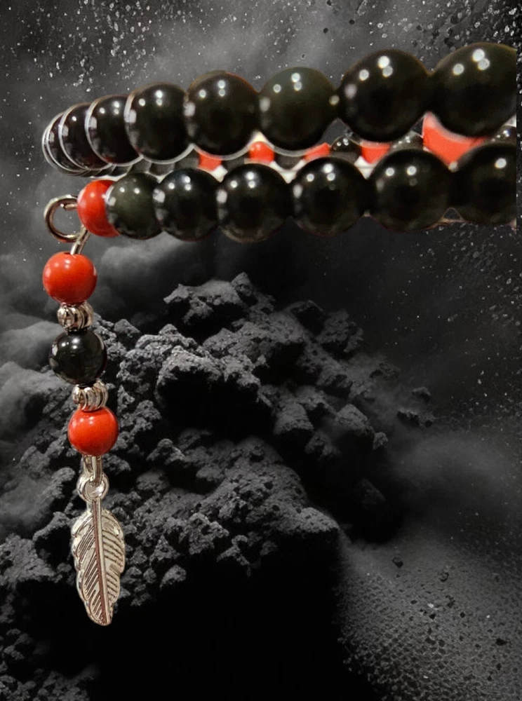 This beautiful bracelet features a round obsidian stone with a very good cut grade and a stunning cinnabar crystal. The charm type is a dangle, and the item length is 7 inches. The bracelet is made of high-quality crystal material and has a memory wire type that is adjustable for a comfortable fit. This bracelet is inspired by nature and features elements of beauty, luck, awareness, love, healing, and luck. The obsidian stone represents strength and stability, while the cinnabar crystal adds a touch of passion and energy to the piece. This bracelet is perfect for those who appreciate the natural world and want to incorporate it into their jewelry collection.
