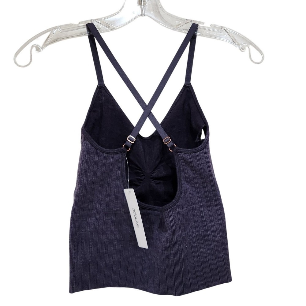 Ododos Seamless Padded Sports Bra Criss-Cross Open Back Brami Top Blue Sz XS/S Brand new with tags. Features: Designed for low impact workout or everyday wear. Super comfy bra meets camisole in this seamless ribbed brami. Wear this top as a bra, or as a stand alone crop top. V-Neckline Strappy Back Seamless Ribbed Adjustable Strap Removeable Pads Easy Match Seamless Fabric 88% Nylon 12% Spandex Soft Touch 4-way Stretch Moisture Wicking