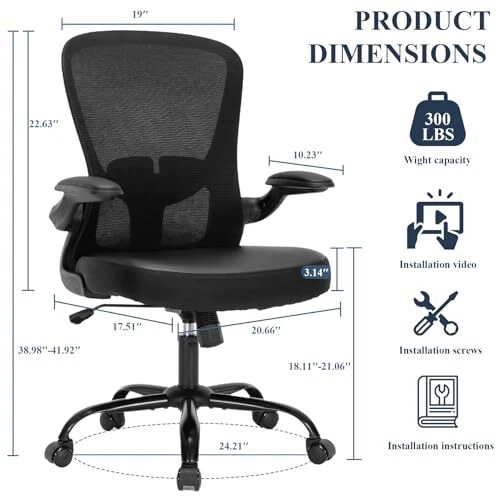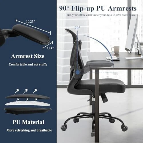 Return Policy Fast Delivery Trusted seller Office Chair,Ergonomic Mesh Desk Office Chair with Lumbar Support,PU Leather Compter Chair with Adjustable Heigh,Executive Swivel Rolling Chair with Flip up Arm,Black Product Description 【Ergonomic Computer Office Chair】 Engineered to contour to the natural curve of the spine, the chair includes 1.97 inches of adjustable lumbar support to enhance comfort and reduce lower back fatigue based on your personal needs and habits.The PU seat cushions and armrests are easy to clean, maintaining a polished appearance. 【Versatile Mesh Office Chair】 Featuring flip-up armrests for convenient storage under desks, these office chairs are designed to save space. Smooth-rolling wheels enable easy mobility around the office. The seat height adjusts between 18.11 to 21.06 inches. For relaxation, simply pull the adjustment lever and rotation button to activate rocking mode, with a backrest tilt angle ranging from 90° to 130° 【PU Leather Desk Chair】 This office chair’s seat cushion is crafted from high elastic sponge foam, measuring 2.75 inches thick and 20.66 inches wide. It offers a soft, resilient seating experience that effectively alleviates fatigue from prolonged sitting. 【Home Office Desk Chairs】 Built with a sturdy nylon frame that’s heat-resistant and load-bearing, this chair ensures stability with its high-capacity five-star base to prevent tipping. BIFMA certified, it features a 3-level SGS certified gas lift, supporting up to 300 lbs. 【Easy Assembly】 The office chair comes with all necessary installation tools, detailed video instructions, and a user-friendly manual. Assembly typically takes just 20-30 minutes, and our dedicated after-sales team is available for any technical support you may need. Shipping Returns Payment Shipping Shipping is FREE to all addresses other than APO/PO boxes in the lower 48 states. All our stock ships from US-based warehouses. Shipped via USPS or UPS (depending on location and package weight) Unless stated otherwise, all orders will ship within 24-72 hours of your payment being processed. Check our feedback to see the great reviews of FAST shipping we offer. Returns Seller does not accept returns Payment We currently accept payment via eBay managed payments only. Once payment is cleared, we will dispatch your shipment within 1-3 business days. Please refer to the "Shipping" tab for more information regarding shipping speed to your destination.