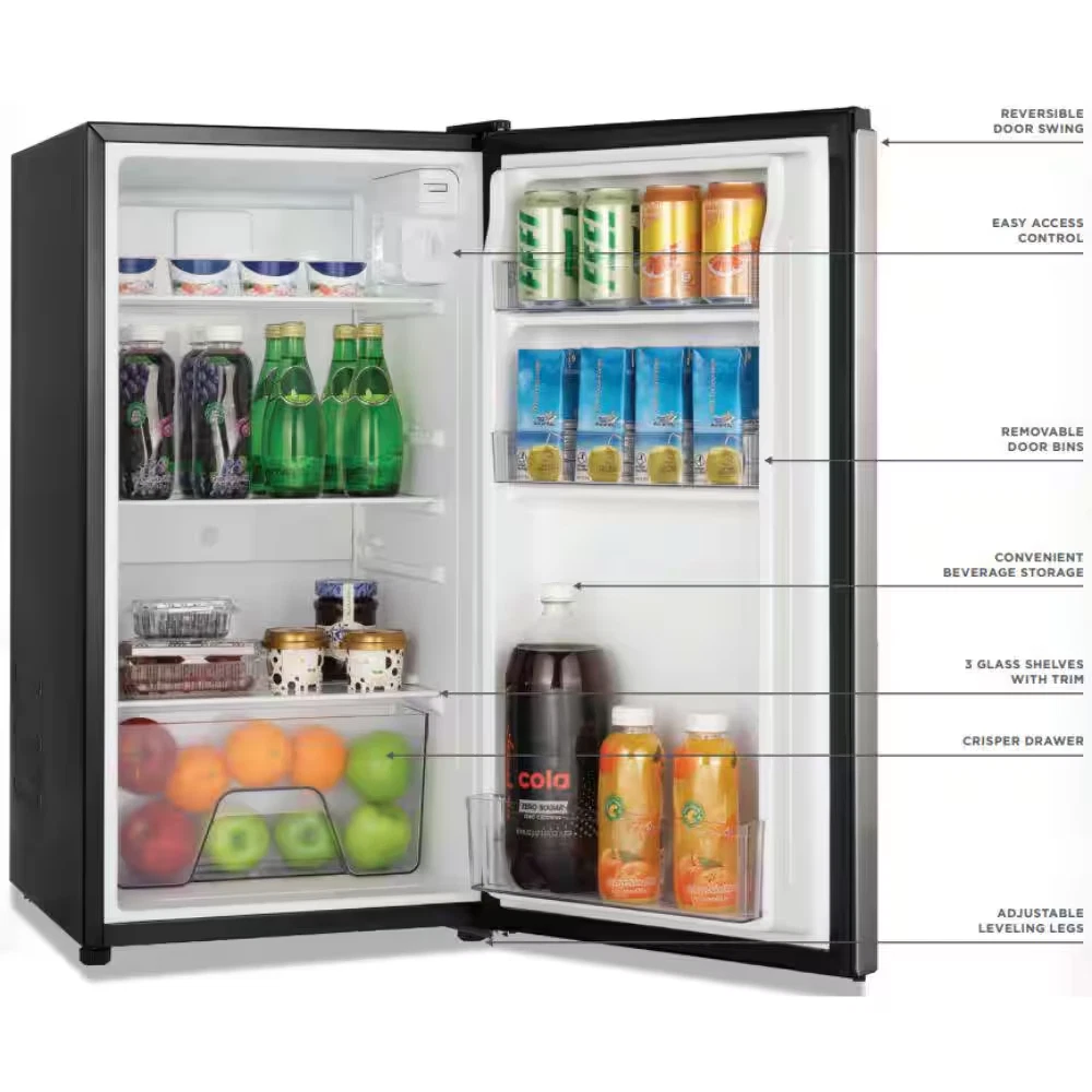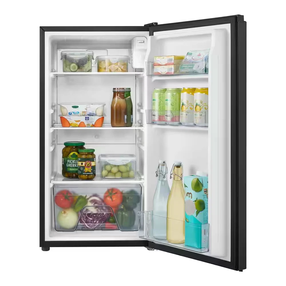 Fast Shipping On All Items 30 Days Money Guarantee Customer Support Excellent Service 100% Satisfaction Satisfaction Guaranteed Office Dorm 3.2Cu-ft Reversible Door Beverage Compact Black Mini Refrigerator Specification Appliance Category Refrigerator Appliance Series Not Applicable Appliance Type Compact Refrigerator Color - Appliance Cabinet Black Color - Door Handle(s) Black Color/Finish Black Color/Finish Family Black Defrost Type Manual Energy Efficiency Tier Rating Not CEE rated Freezer Capacity (cu ft) 0 cu ft Freezer Features No Additional Features Freezer Type No Freezer General Features No Additional Features Handle Type Recessed Handle Hardware Color/Finish Black Hardware Color/Finish Family Black Ice Maker Features No Ice Maker Indoor/Outdoor Indoor Installation Depth Counter Depth Number of Doors 1 Door Number of Freezer Baskets/Bins No Baskets/Bins Number of Freezer Shelves No Shelves Number of Refrigerator Shelves 2 Shelves Operational Features No Additional Features Product Weight (lb) 43.90 lb Refrigeration Dispenser Features No Dispenser Refrigerator Capacity (cu ft) 3.2 cu ft Returnable 90-Day Shelf Material - Refrigerator Glass Storage Features Adjustable Shelves/Racks,Removable Shelves Temperature Control Type Internal Analog Total Capacity (cu ft) 3.2 cu ft Water Filter Replacement Model# Not Applicable Manufacturer Warranty 1 Year Parts and Labor; 5 Years Compressor Part Only Depth (Excluding Handles) (in) 20.6 in Depth (Including Handles) (in) 20.6 in Depth (Less Door) (in) 16.9 in Depth With Door Open 90 Degrees (in) 34.7 in Height to Top of Door Hinge (in) 33.20 in Height to Top of Refrigerator Case (in) 33.20 in Product Depth (in) 19.10 in Product Height (in) 33.20 in Product Width (in) 17.50 in Refrigerator Width (in) 17.10 in 17.5 inches x 19.1 inches x 33.2 inches. Weight: 43.9 lb Item Description Compact size is ideal for offices, kitchenettes, and dorms In-door storage to fully optimize interior capacity Adjustable temperature control and removeable glass shelves The Vissani 3.2 cu. ft. Mini Refrigerator has the storage options you're looking for. It is a freezer-less design which allows for more usable fresh food and drink storage capacity. The sleek appearance is matched by its well-designed interior, which includes a can holder to conveniently keep canned beverages in the door, while additional door shelves provide space for other frequently used items. Its glass shelves are easy to clean, and the ENERGY STAR qualified design helps save on energy costs without sacrificing performance. Perfect compact size for use in dorm rooms, offices, basements, rec/playrooms, break rooms. Upfront interior analog controls for making quick adjustments to internal temperature 3 fresh-food glass shelves help keep foods organized and are easy to clean Door can holder keeps beverage cans neat and makes it easy for you to just grab 1 and go Freezer less design provides more usable capacity ENERGY STAR rated for energy efficiency Door shelves help your keep frequently used items up front for easy access 3.2 cu. ft. capacity compact refrigerator is manual defrost Reversible door offers multiple options for placement in a room Flush back for ease of installation Warranty is 1-year parts and labor, 5-years compressor (part only) Item does not qualify for the major appliance delivery and haul away or installation services About us We offer the best prices around on high quality products. Our E-store includes media such as books, movies, music and games while offering electronics, toys, sporting apparel, clothing, tools, general home, garden items and more. Shipping We are always working hard to ensure your package arrives as soon as possible. Please understand that some factors like weather, high postal traffic, and the performance of shipping companies are outside of our control. We offer free shipping to the lower 48 states and ship within 2-3 business days of payment, usually sooner. We do not accept P.O. Boxes. Please provide a physical address. For shipping outside of the continental USA, we only use eBay's Global Shipping Program.The item is shipped to KY and then sent to the rest of the world. International customers are responsible for all duties and taxes. Continue to check out to calculate costs for shipping the item to your country. Messages regarding eBay's Global Shipping Program MUST be directed at eBay EXCLUSIVELY. Returns We offer a 30-Day Return Policy on items in which you are not completely satisfied with. You have the option of a full-refund or an exchange of the item. No returns are available on items shipped outside of the USA Satisfaction We try over very best to make sure every customer is completely satisfied. If there's a problem, message us! We're happy to help. Payment Options Shop With Confidence