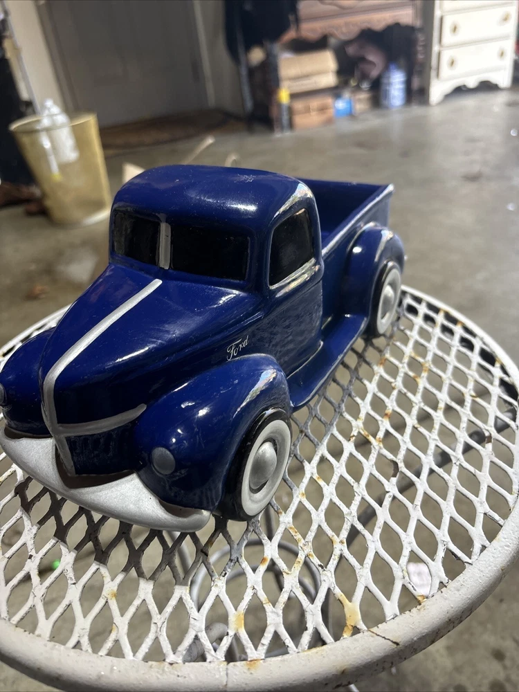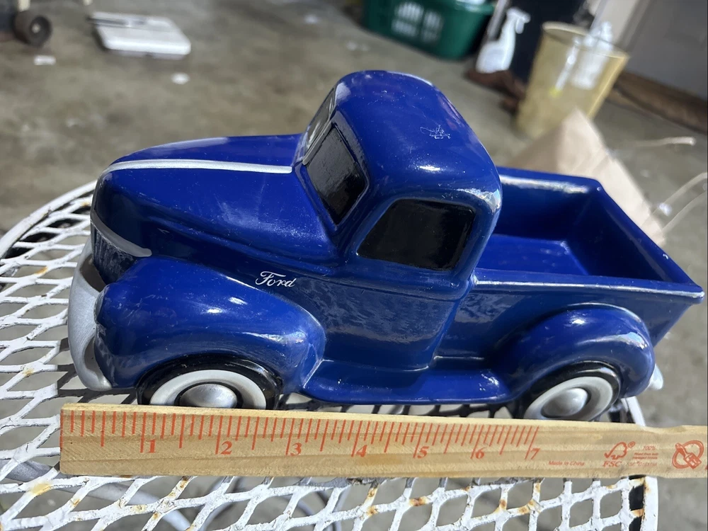 This is an official licensed product from Ford Motor Co. featuring a 1950 F-1 Ceramic Pickup design. The blue color and automobile theme make it a perfect addition to any collection. The item is an original and was manufactured in China, with no modifications made. It is a great collectible for those interested in American Ford automobiles.