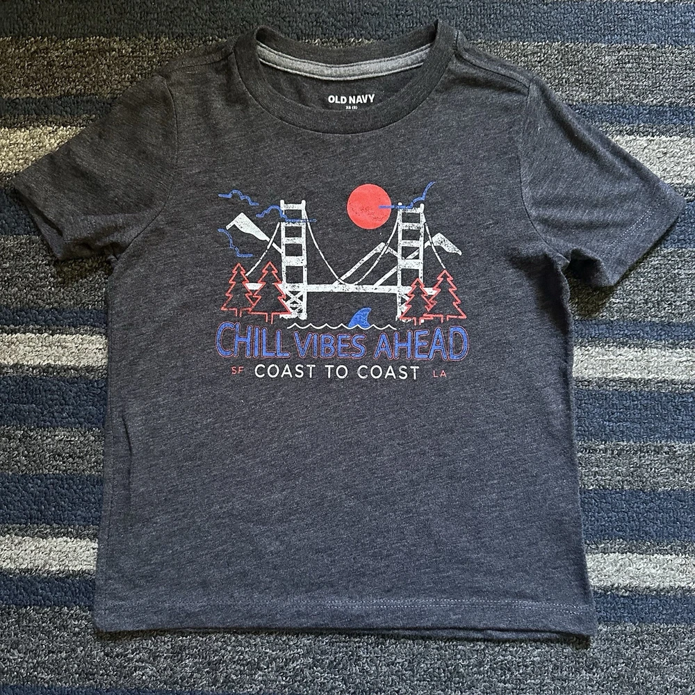 Old Navy Boys 6 Piece Short Sleeve Graphic Tees Clothing Lot * Size XS 5 * Gently used- white tee has small stain- see pic * Great for play or school Smoke & Pet Free Home