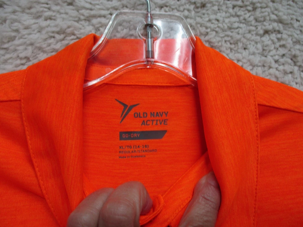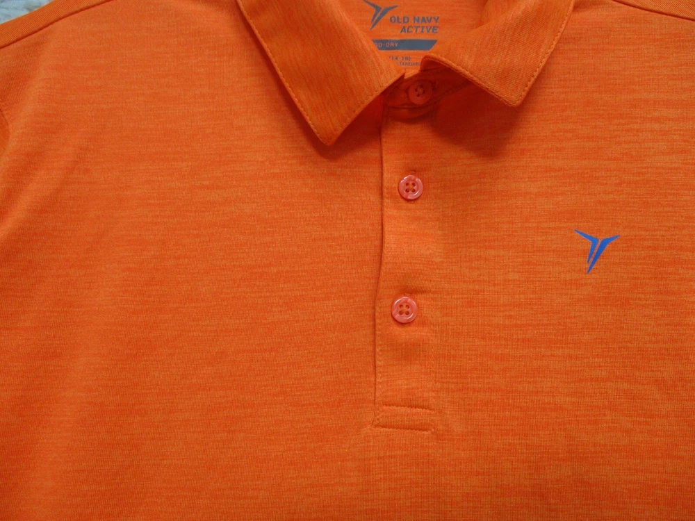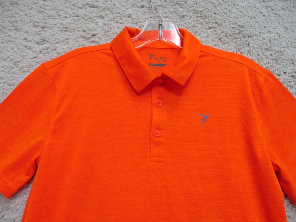 Character: Boy Brand: Old Navy Season: Fall, Spring, Summer, Winter Department: Boys Features: All Seasons, Stretch Type: Polo Pattern: Solid Size: XL Sleeve Length: Short Sleeve Fit: Regular Theme: Logo, School Accents: Button, Logo Occasion: Casual Style: Basic Neckline: Collared Seller Notes: “Very Good Used Condition. Please, See Pictures for Full Condition and Measurements.” Performance/Activity: School, Walking Closure: Button Country/Region of Manufacture: China Fabric Type: Blended Fabric Color: Orange Material: Polyester Blend